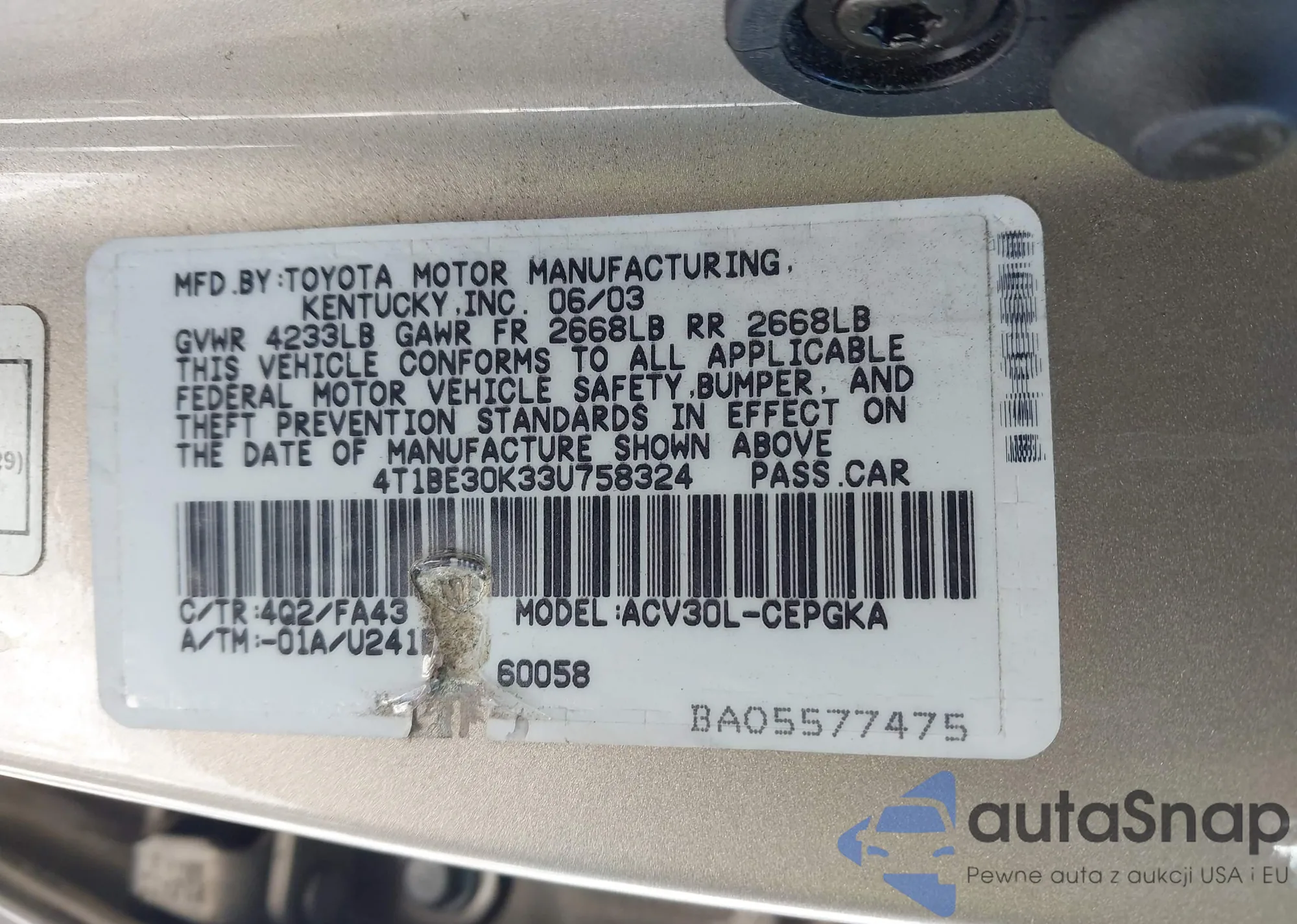 VIN: 4T1BE30K33U758324