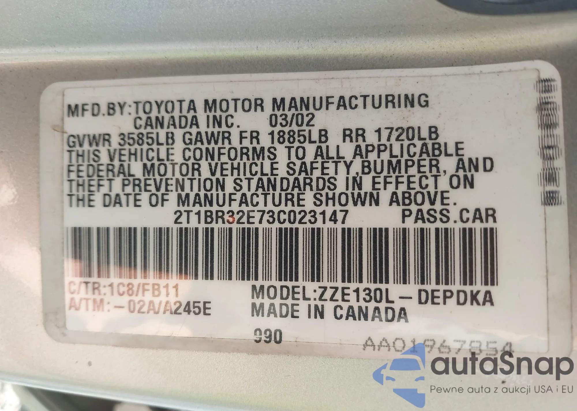 VIN: 2T1BR32E73C023147