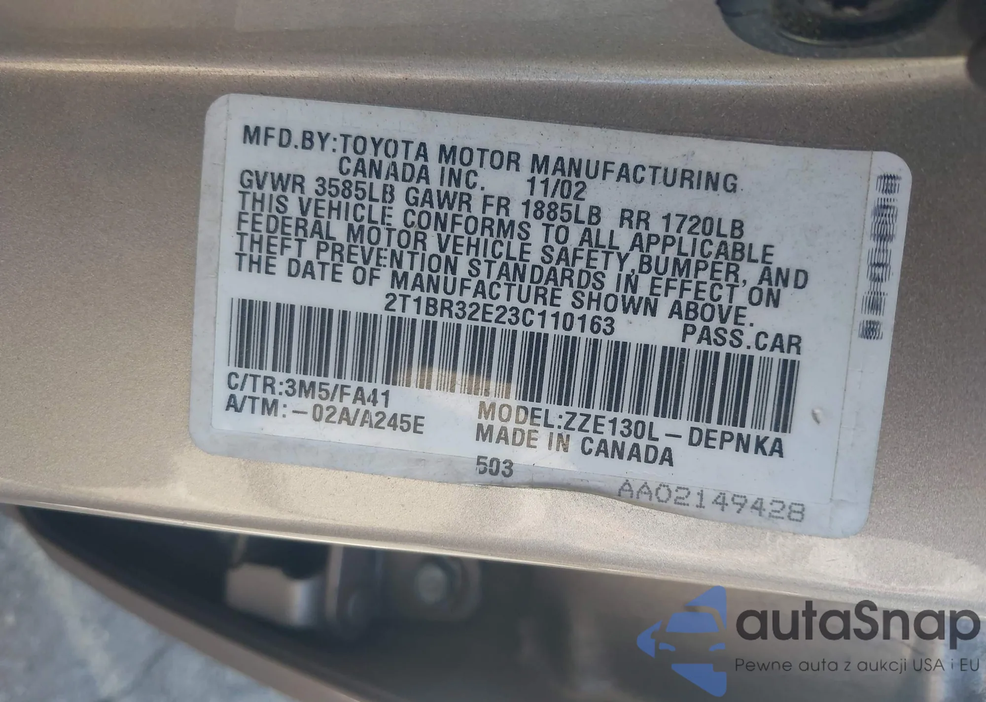 VIN: 2T1BR32E23C110163