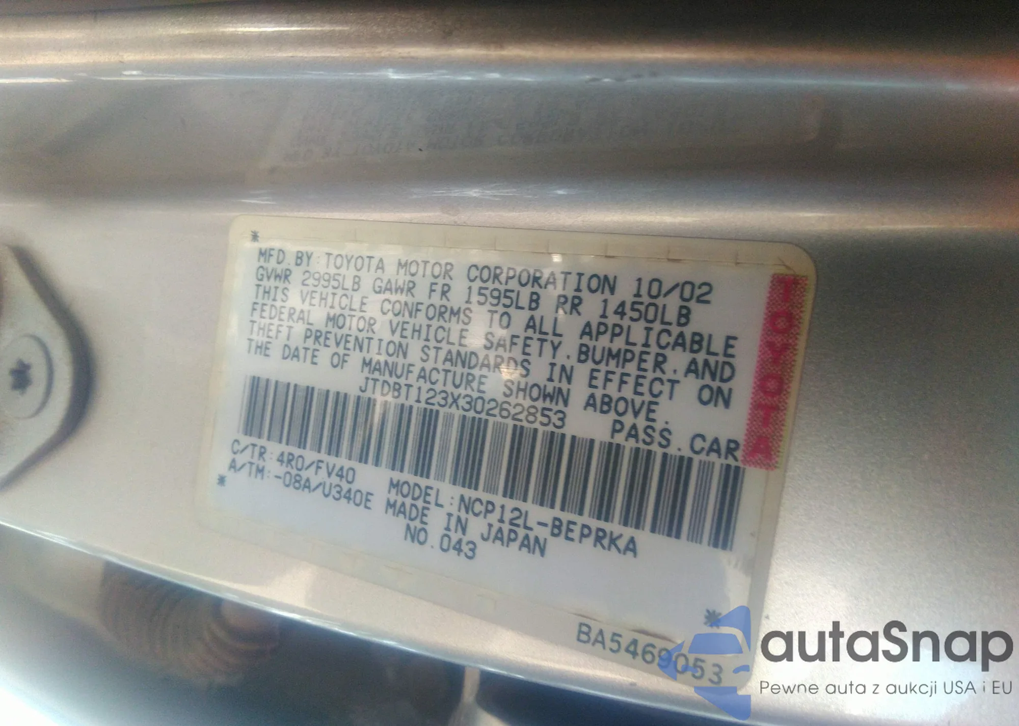 VIN: JTDBT123X30262853