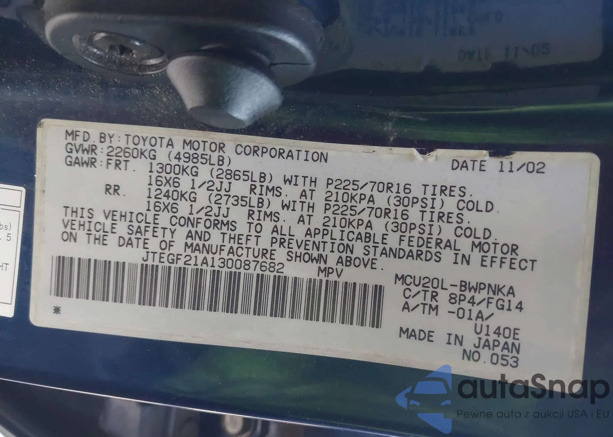 VIN: JTEGF21A130087682