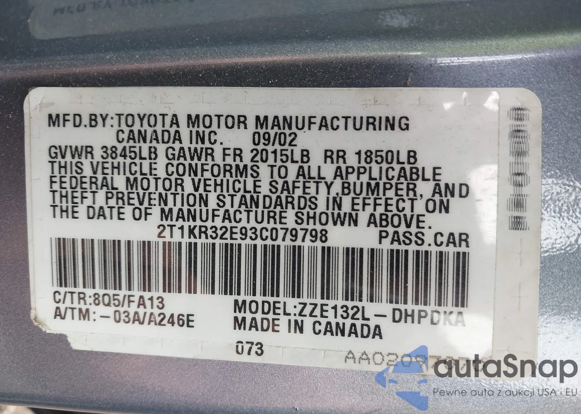 VIN: 2T1KR32E93C079798