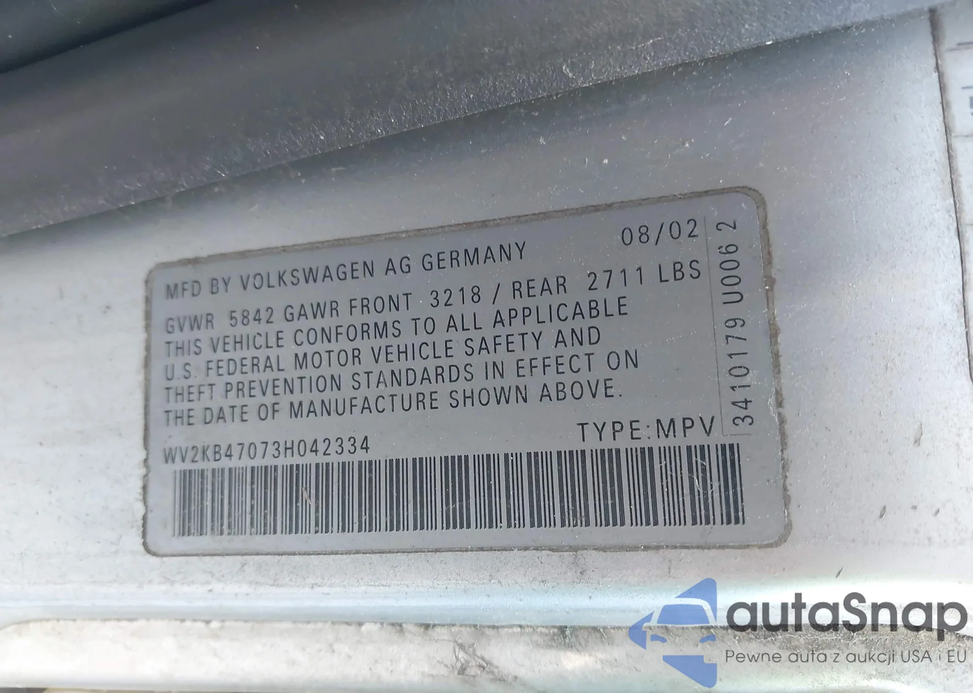 VIN: WV2KB47073H042334