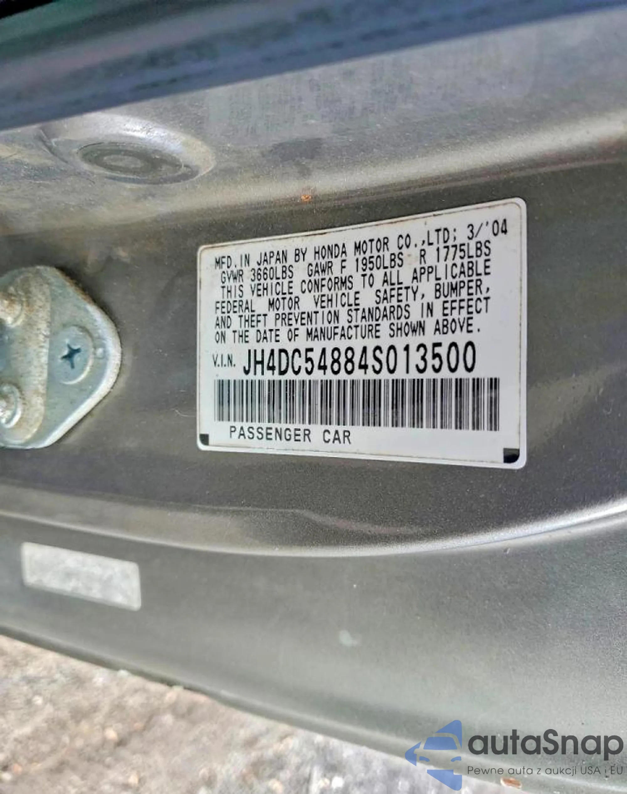 VIN: JH4DC54884S013500