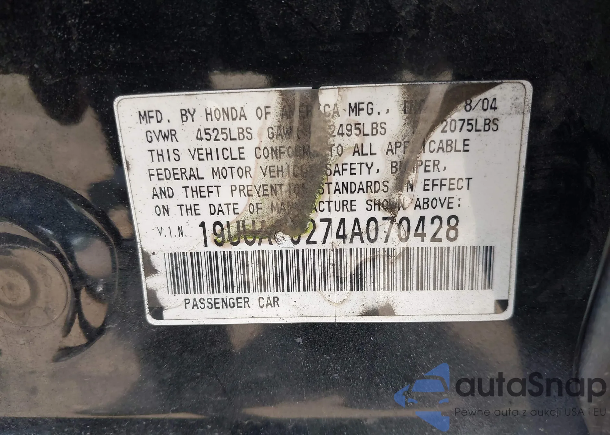 VIN: 19UUA66274A070428