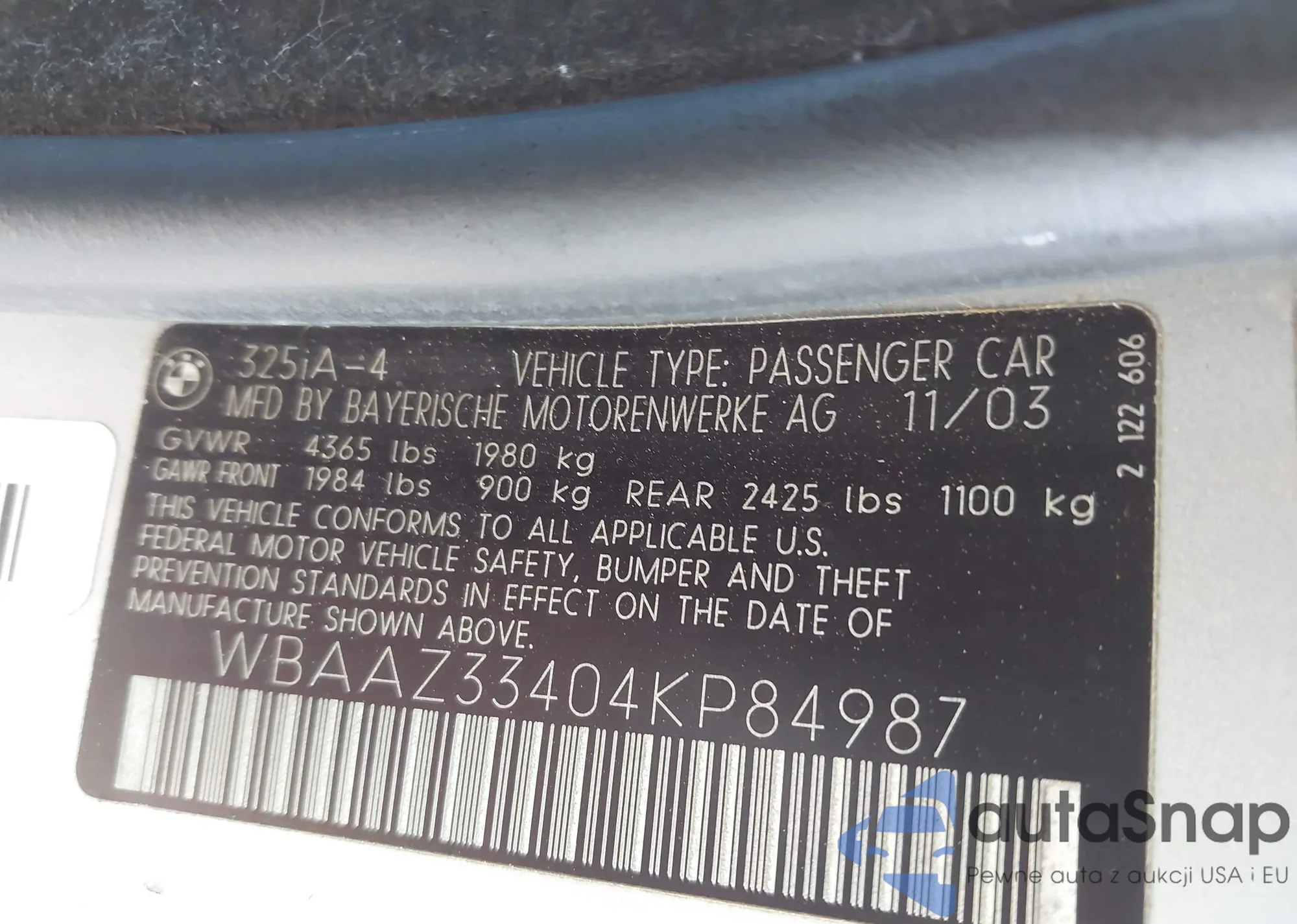 VIN: WBAAZ33404KP84987