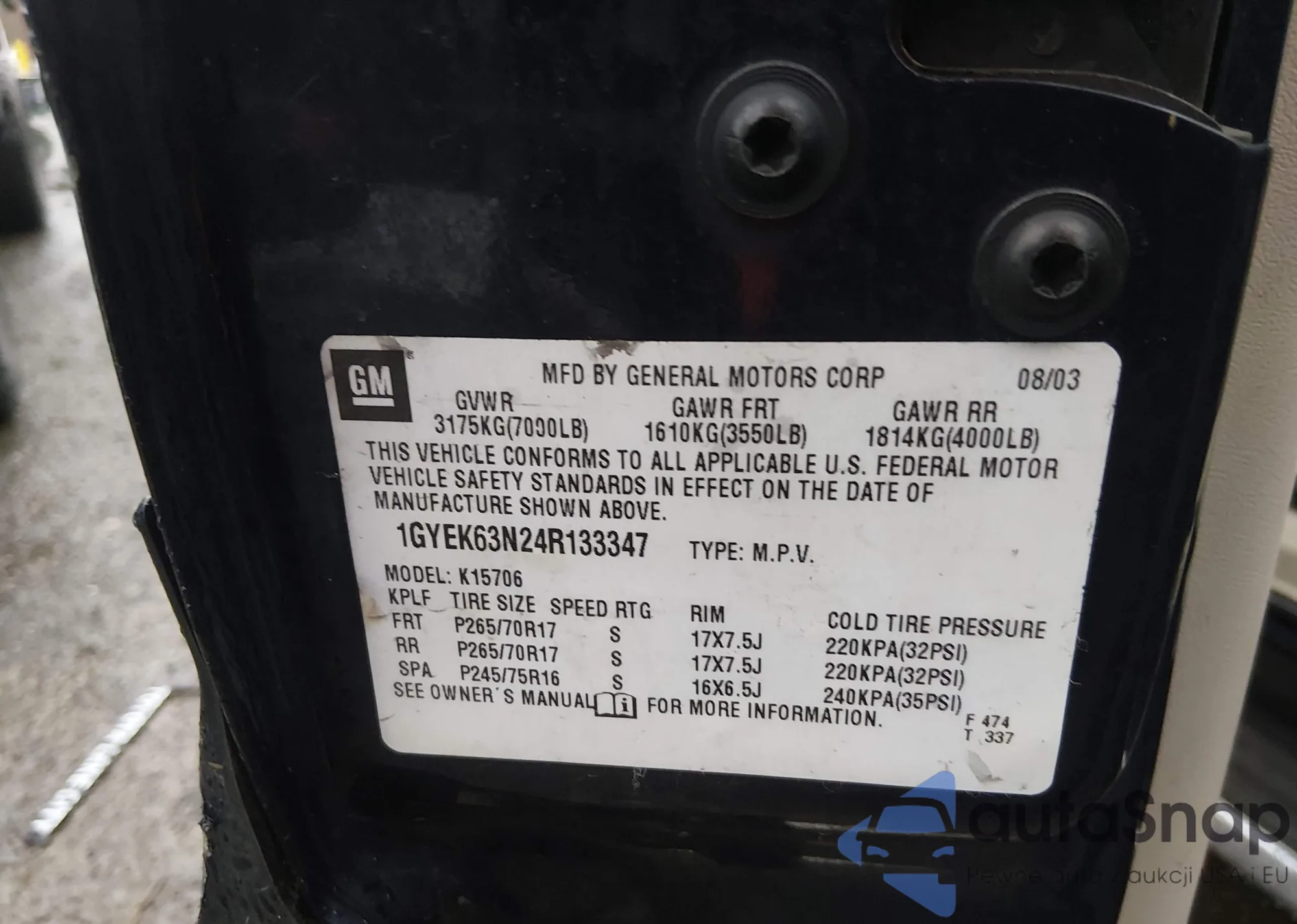 • VIN: 1GYEK63N24R133347