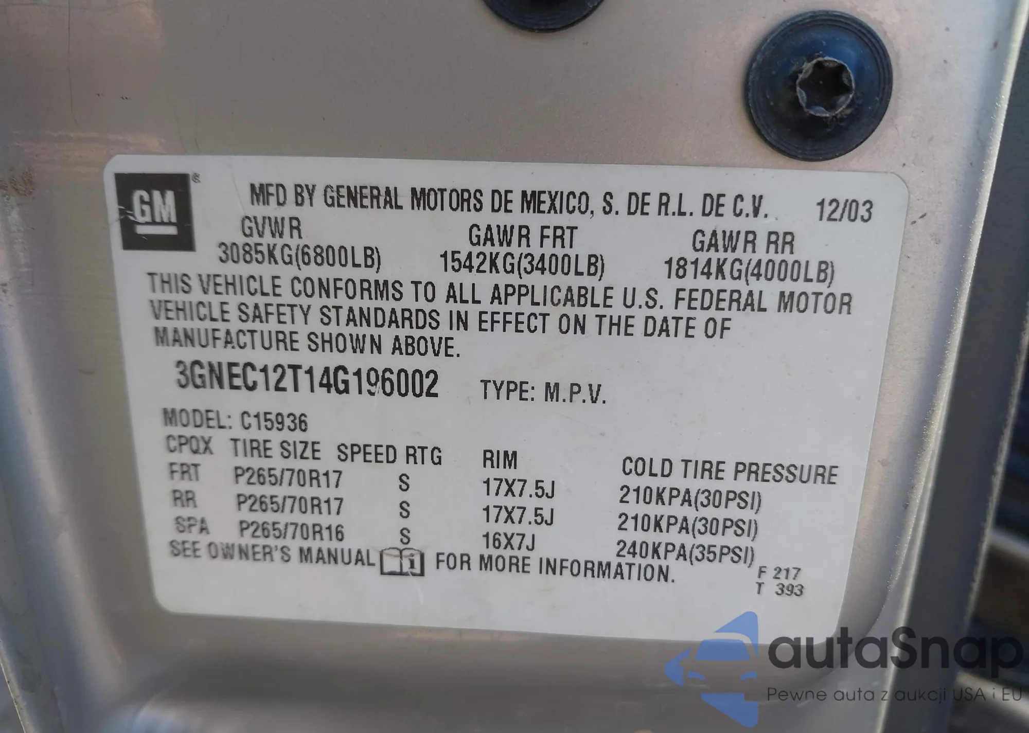 VIN: 3GNEC12T14G196002