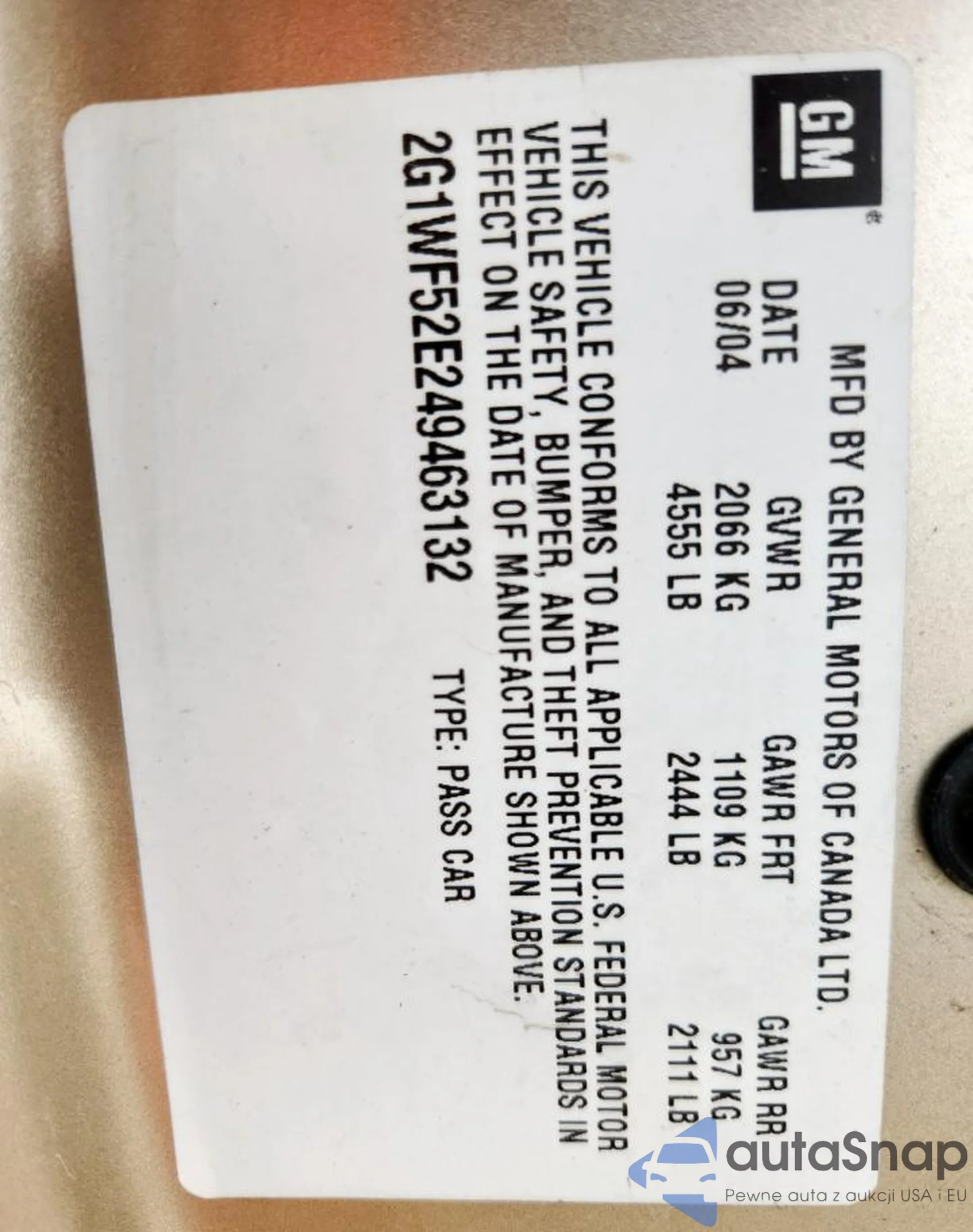 VIN: 2G1WF52E249463132