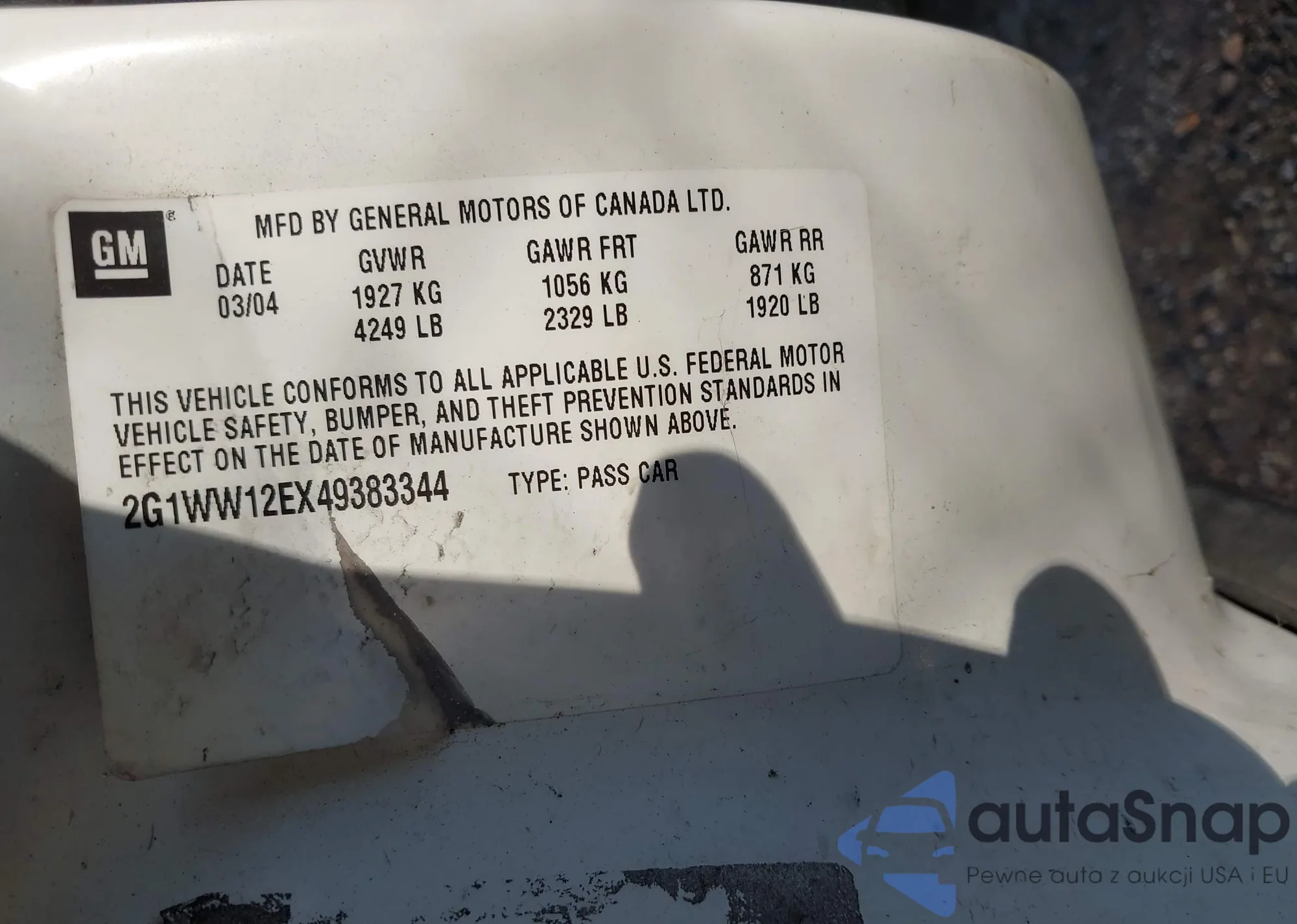 VIN: 2G1WW12EX49383344