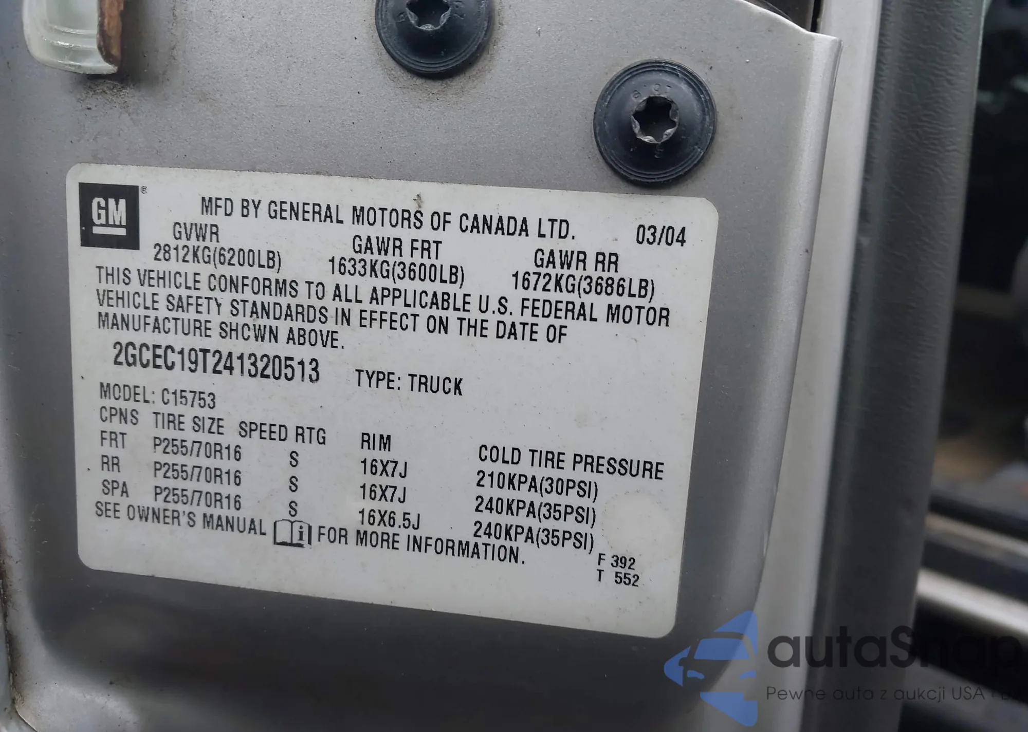 VIN: 2GCEC19T241320513