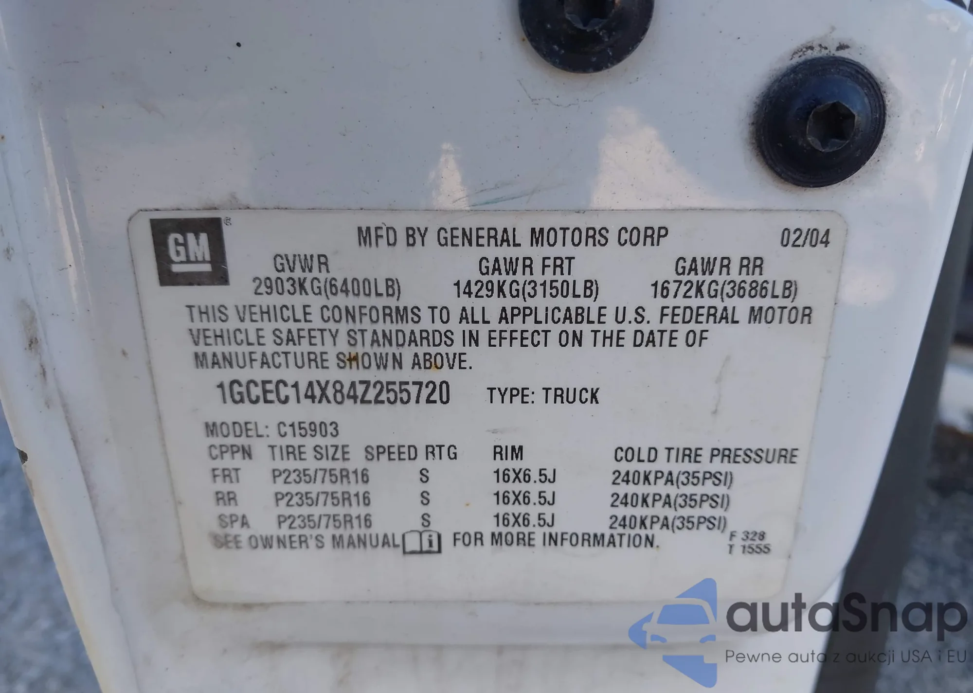 VIN: 1GCEC14X84Z255720