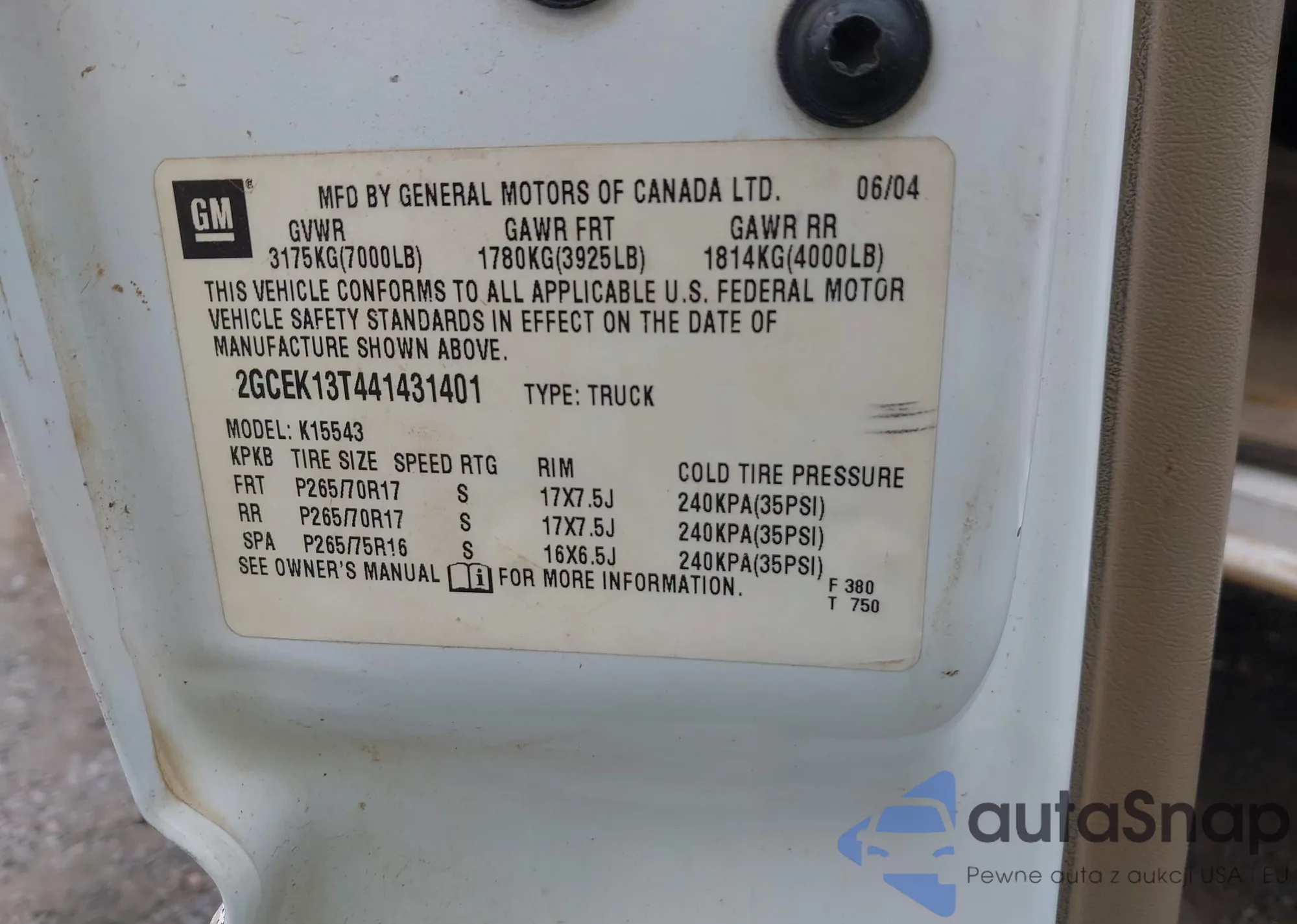 VIN: 2GCEK13T441431401