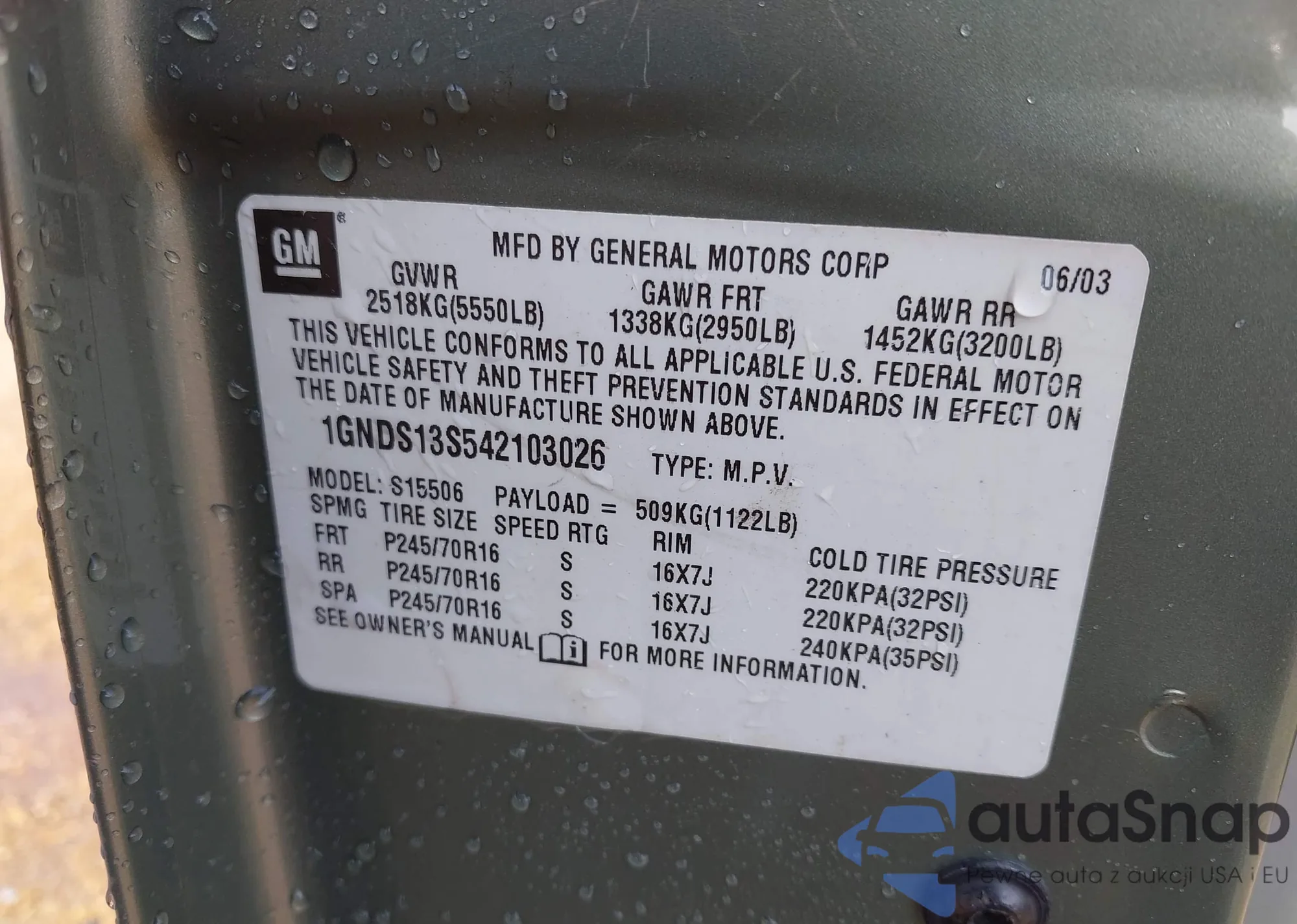 • VIN: 1GNDS13S542103026