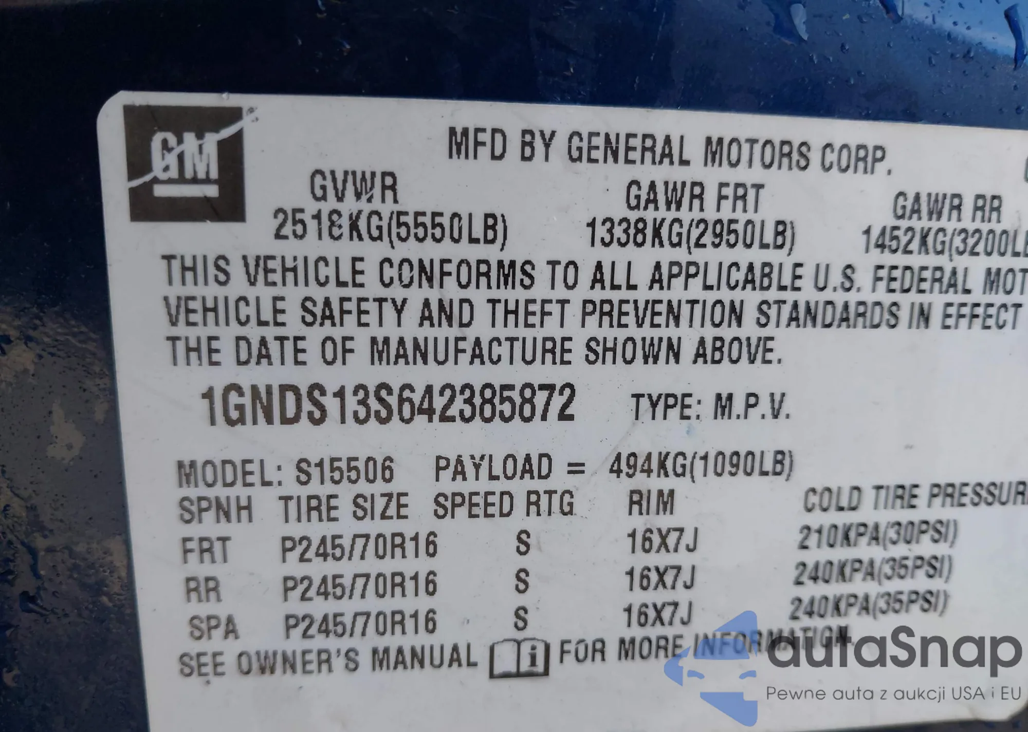• VIN: 1GNDS13S642385872