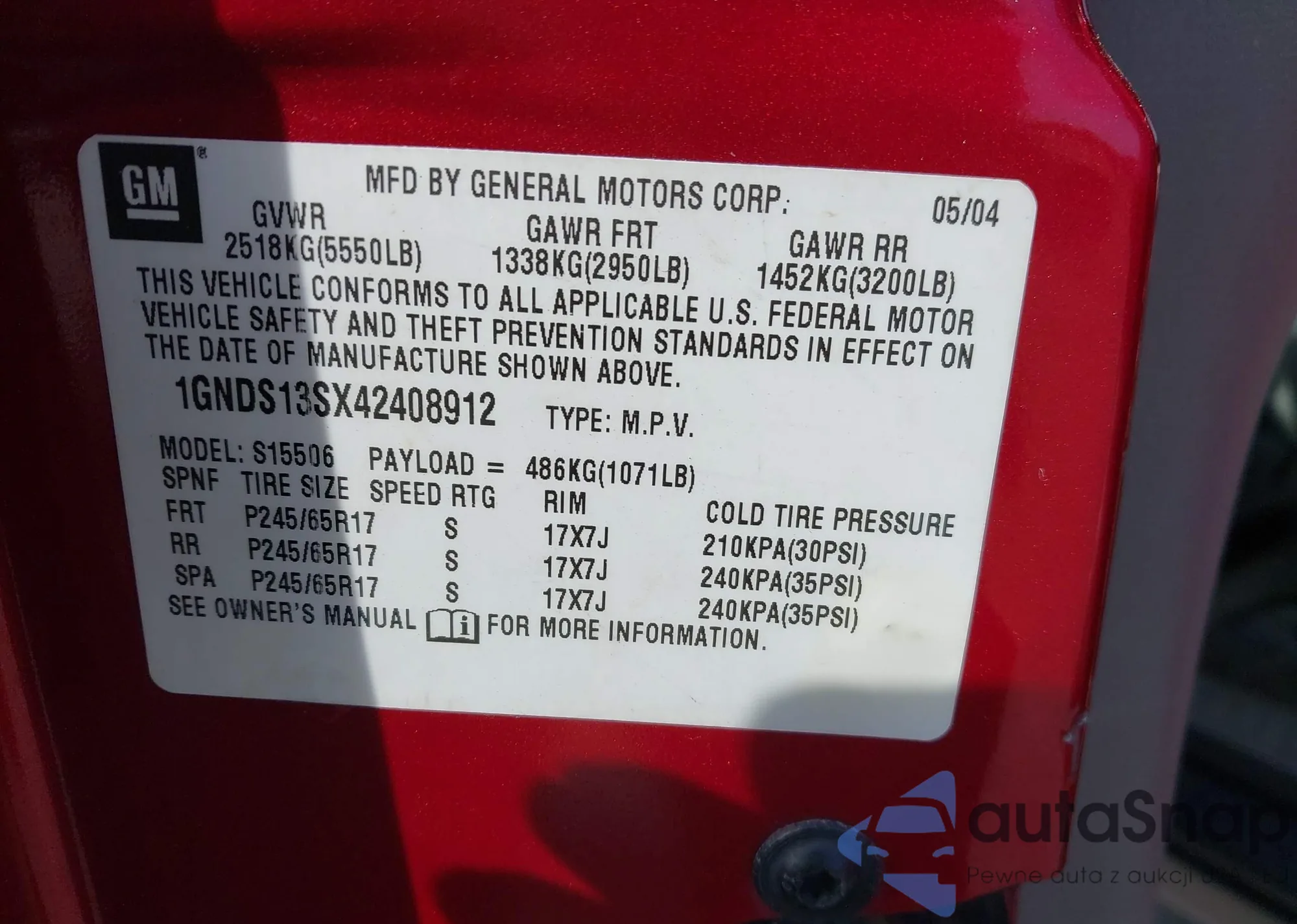 • VIN: 1GNDS13SX42408912