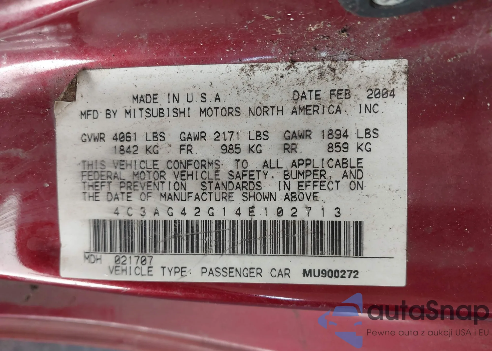 Автомобиль Chrysler Sebring 2004 (VIN 4C3AG42G14E102713) ранее не участвовал в торгах. Документы чистые, пробег соответствует или ниже среднего по рынку. Продаётся страховой компанией — рекомендуем покупку. Доставка в порт займет около 6–8 недель.