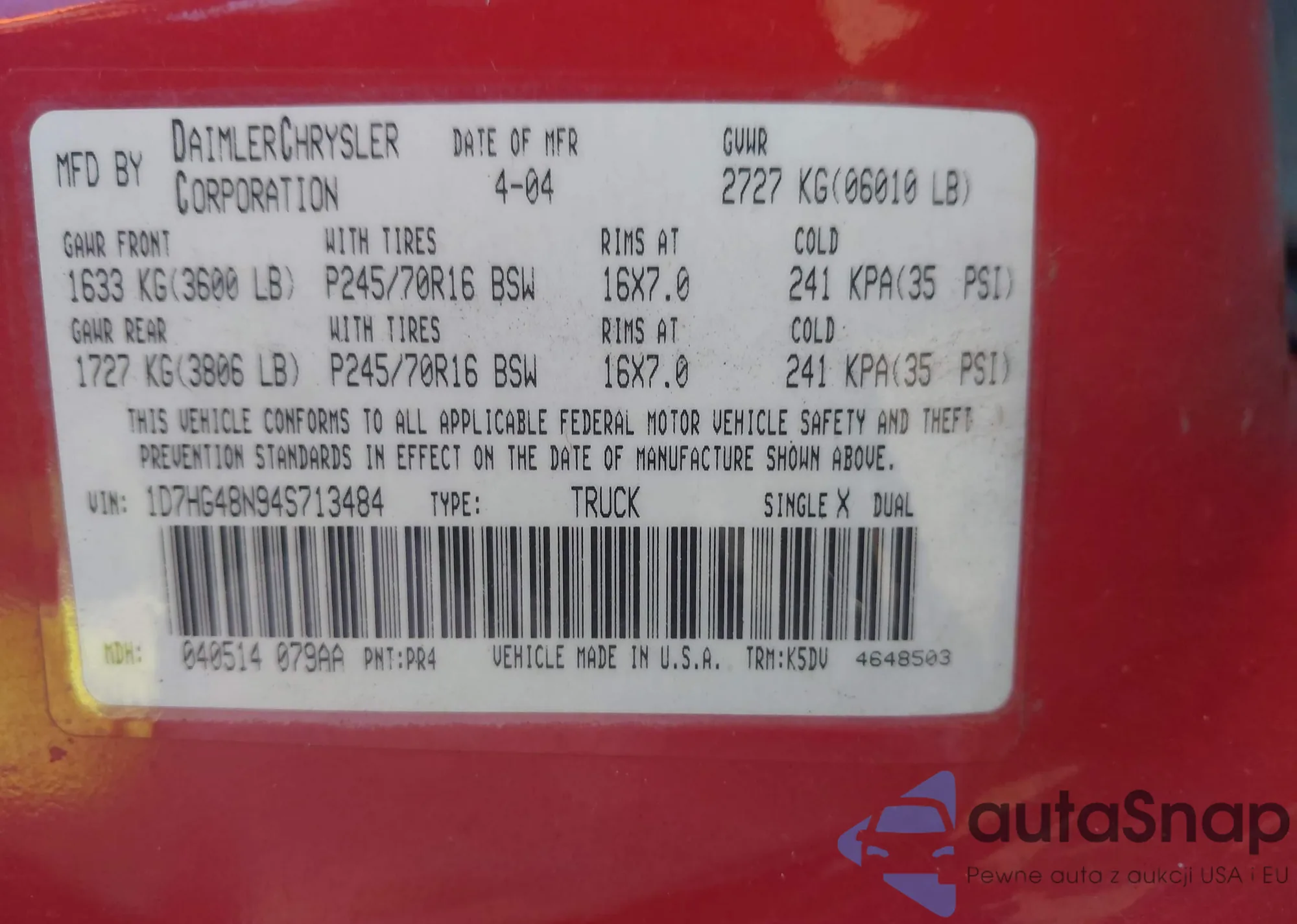 VIN: 1D7HG48N94S713484