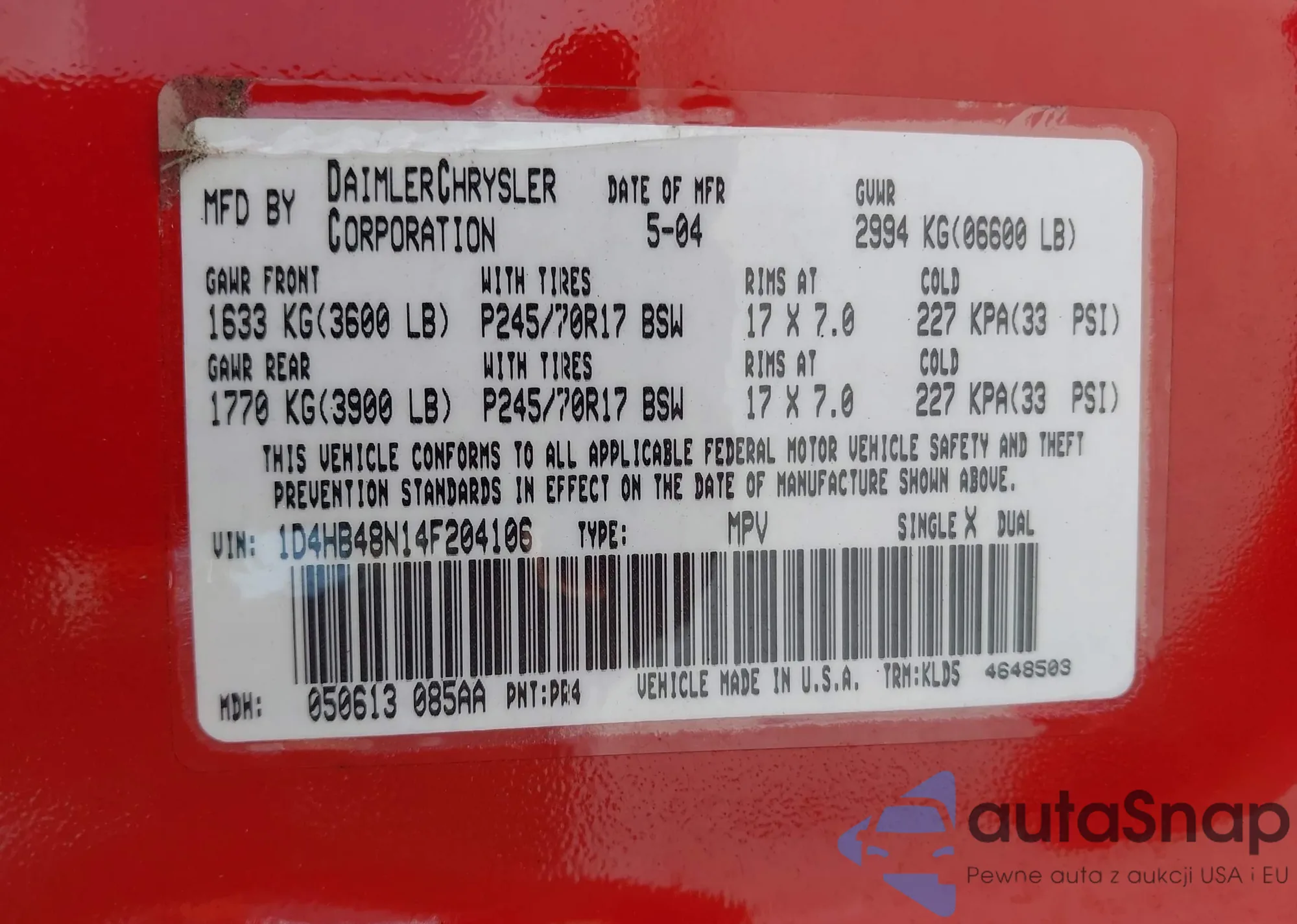 VIN: 1D4HB48N14F204106