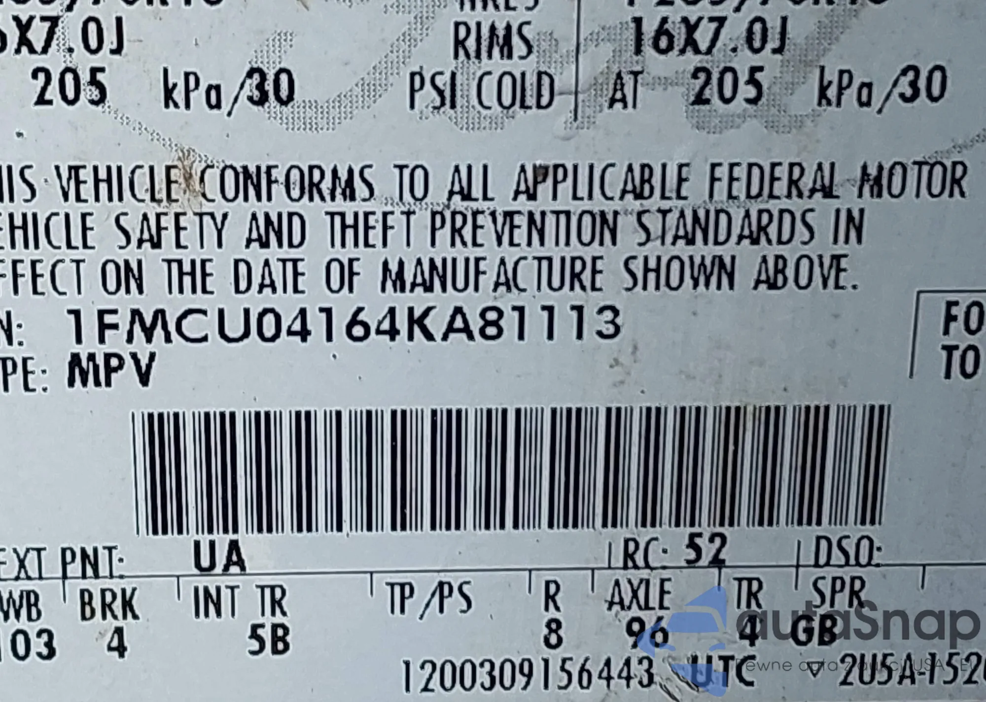 VIN: 1FMCU04164KA81113