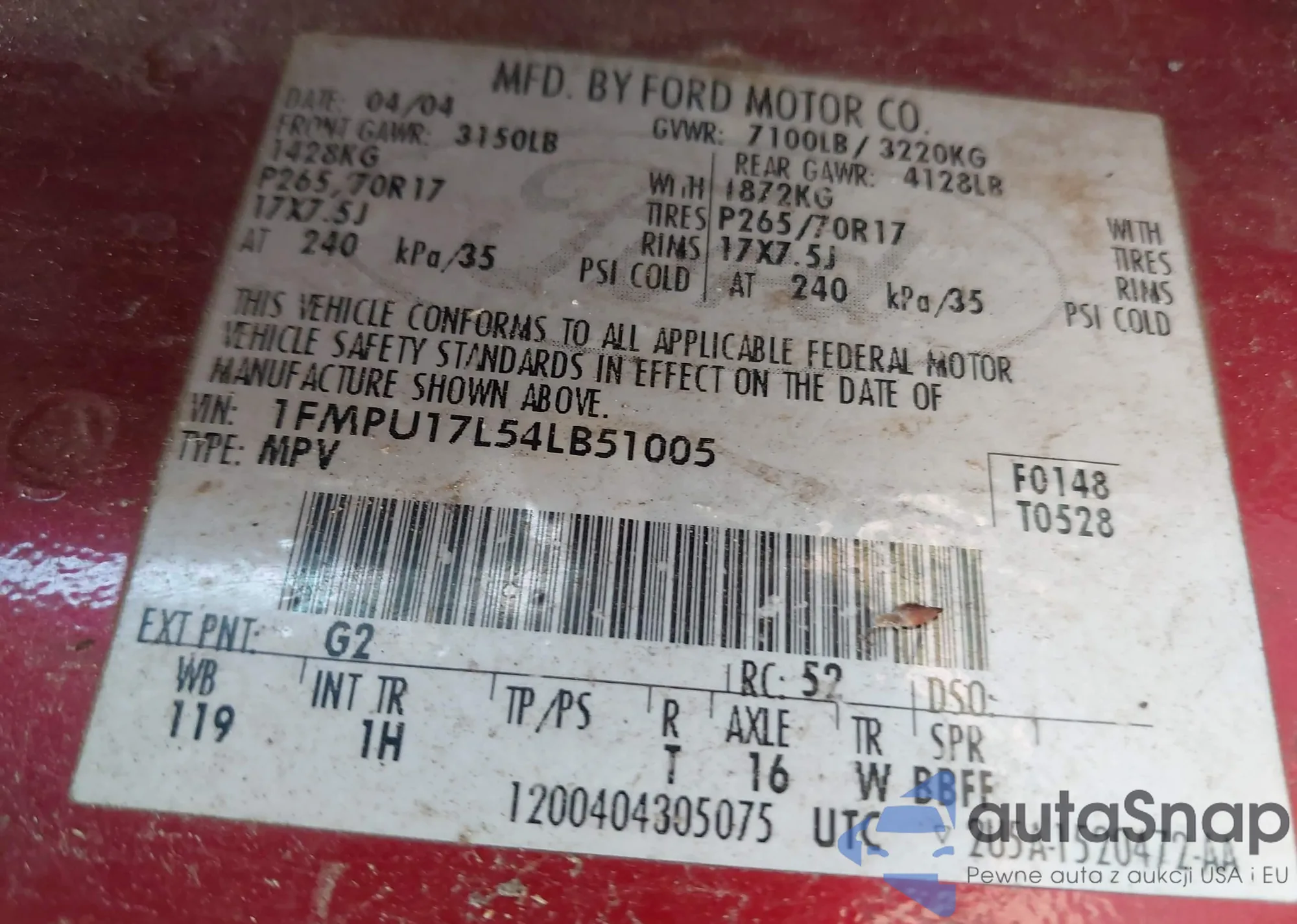 1FMPU17L54LB51005 IAAI
