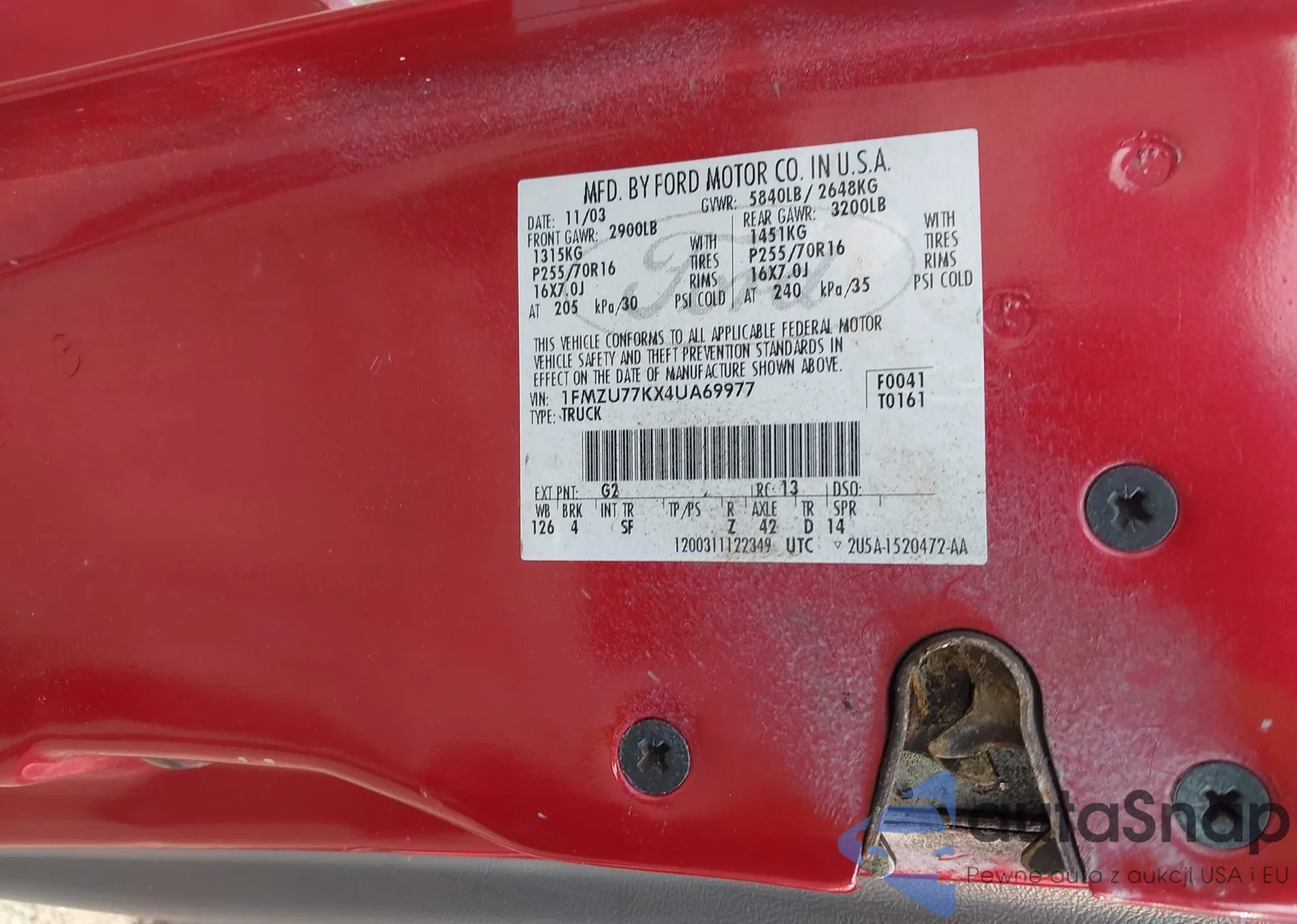 VIN: 1FMZU77KX4UA69977