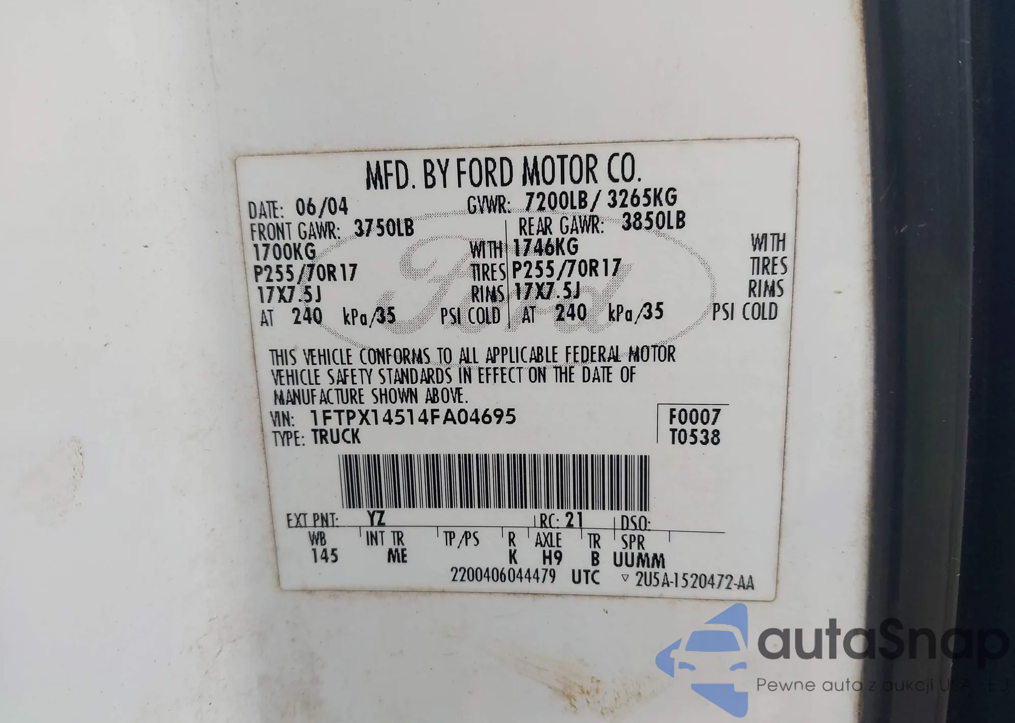VIN: 1FTPX14514FA04695