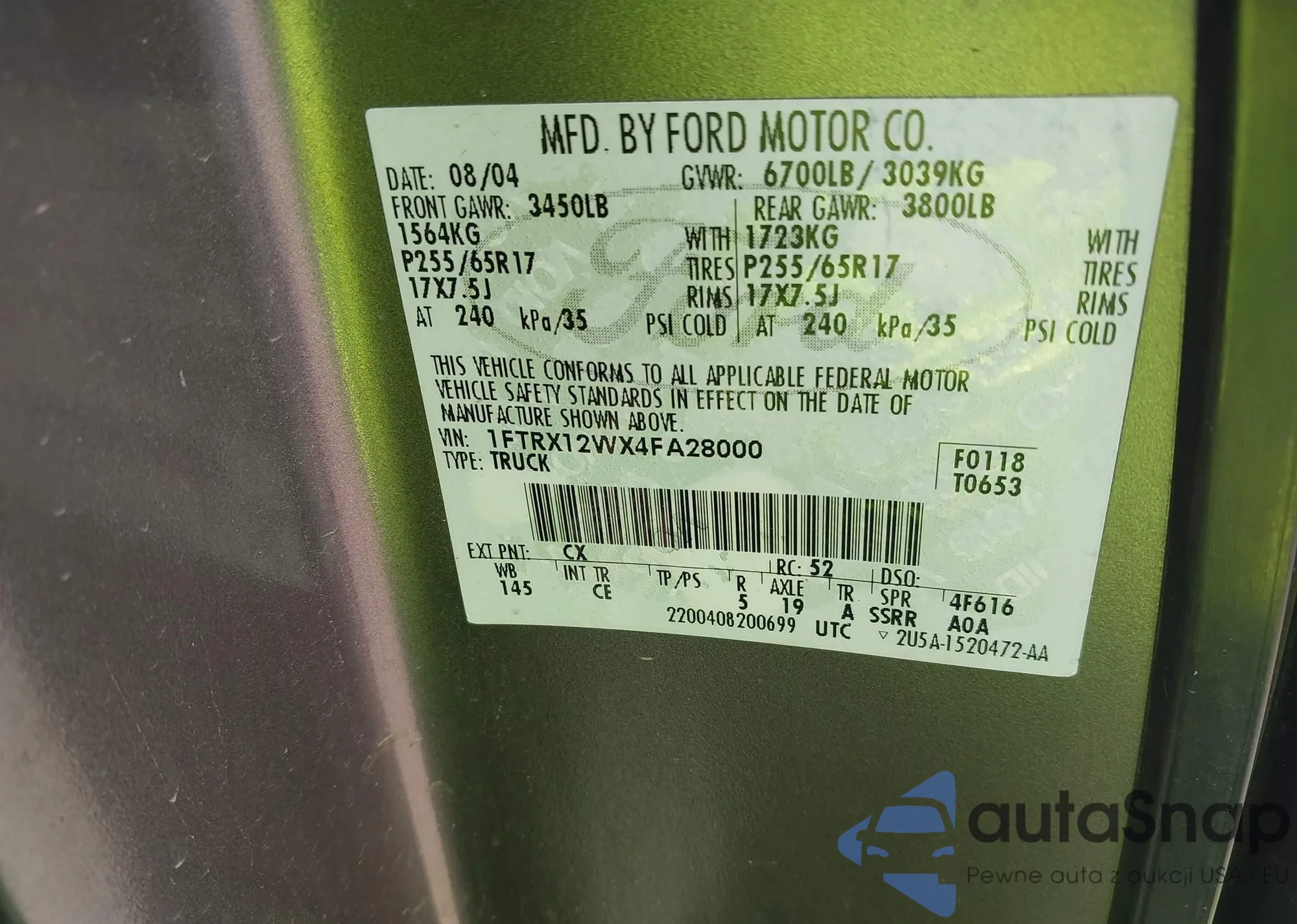 VIN: 1FTRX12WX4FA28000