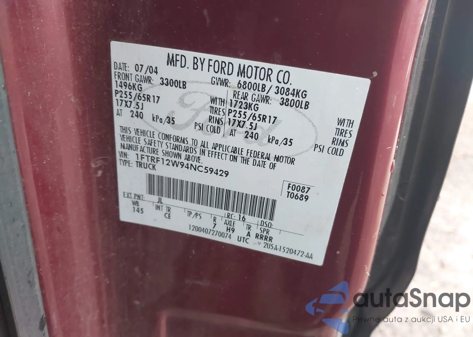 VIN: 1FTRF12W94NC59429