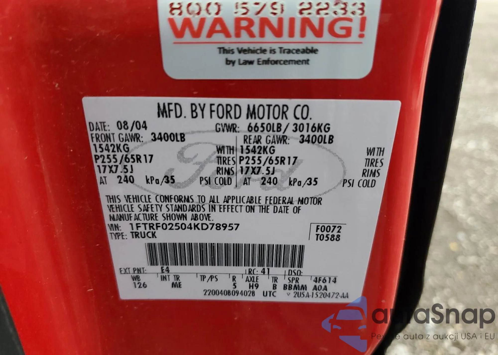VIN: 1FTRF02504KD78957