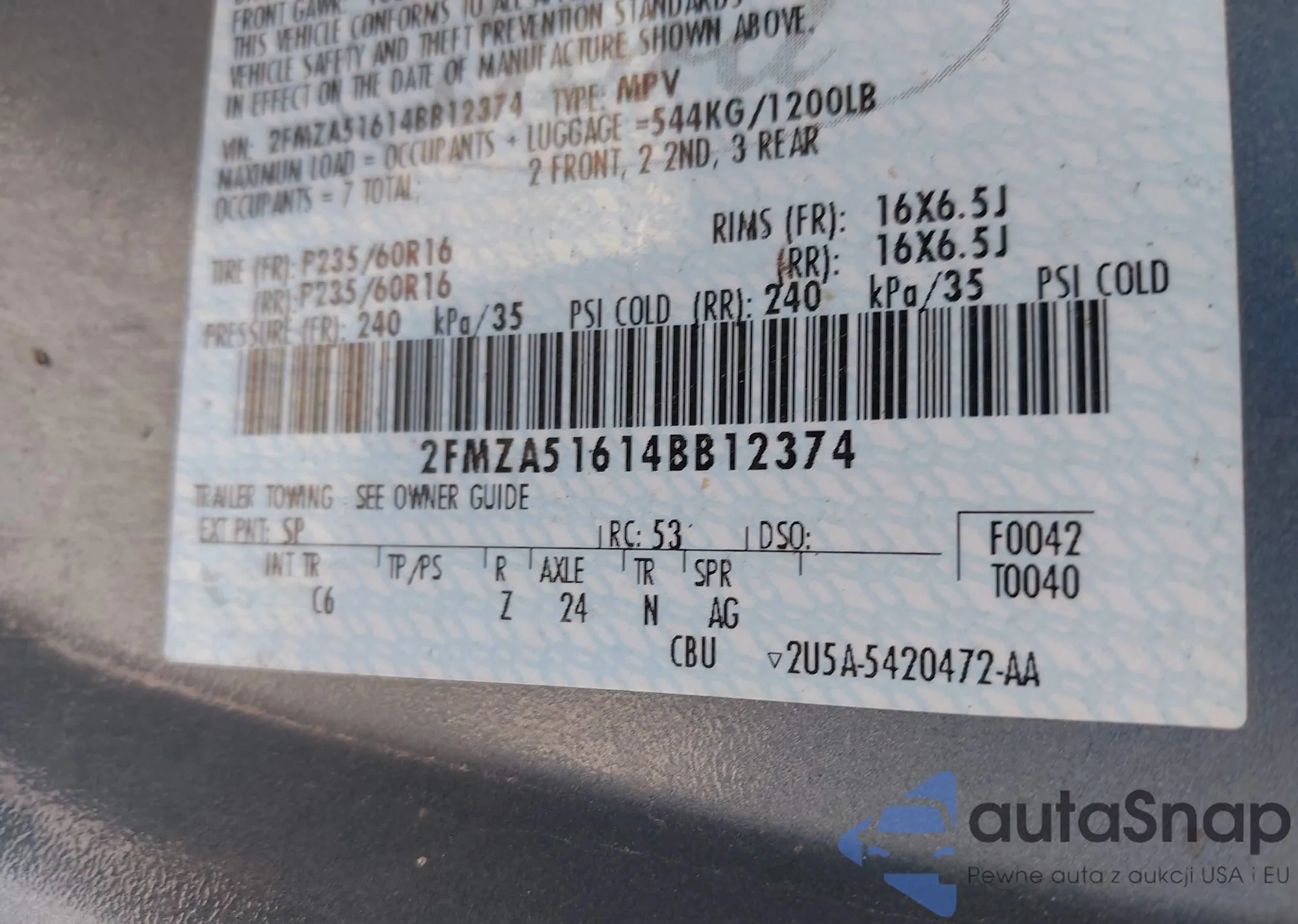 VIN: 2FMZA51614BB12374