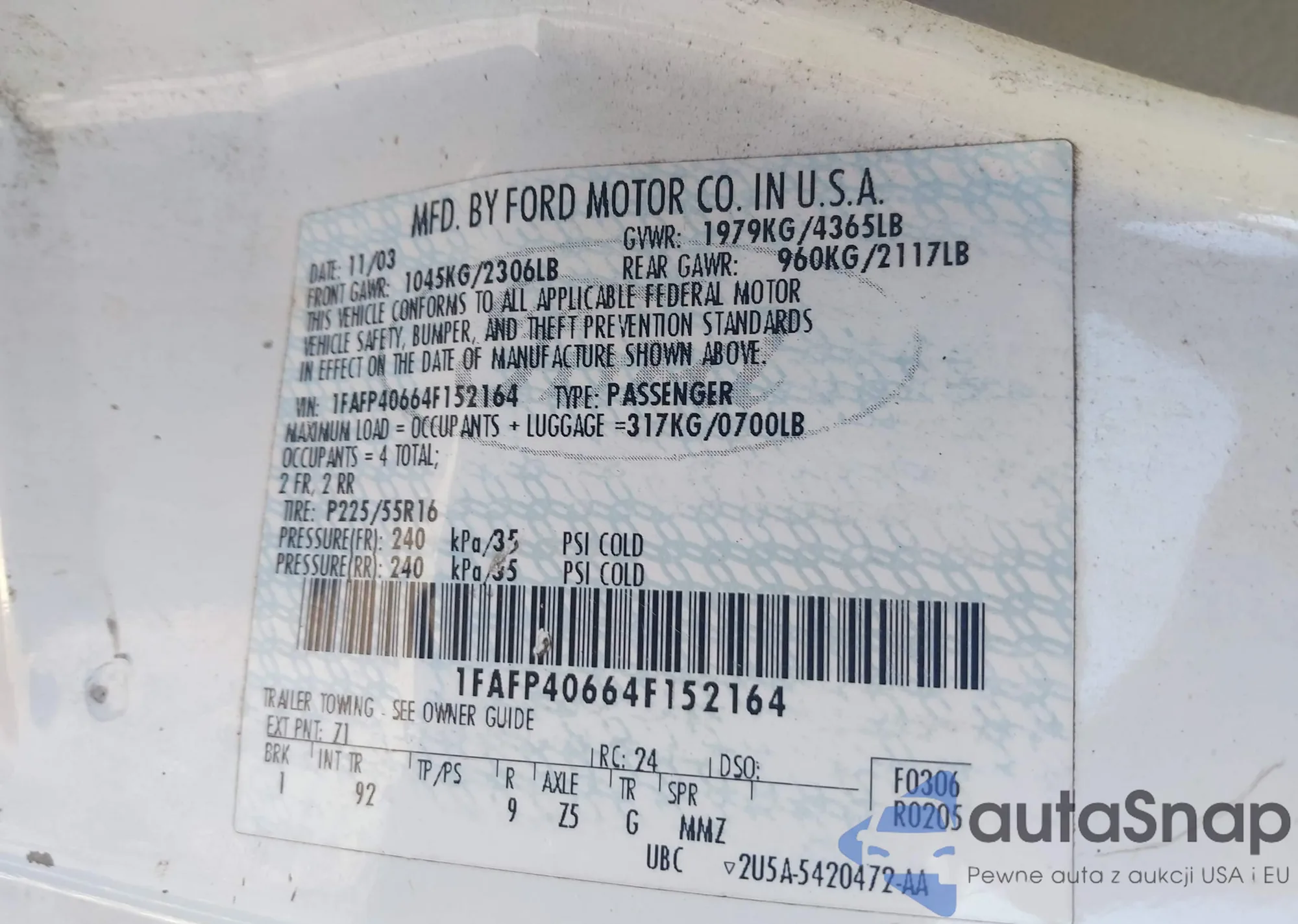 VIN: 1FAFP40664F152164