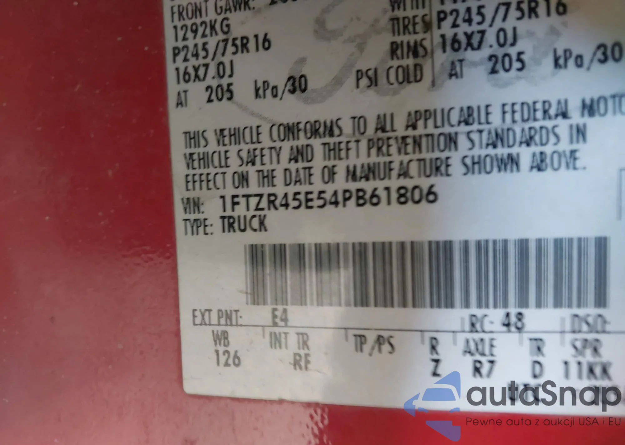 VIN: 1FTZR45E54PB61806