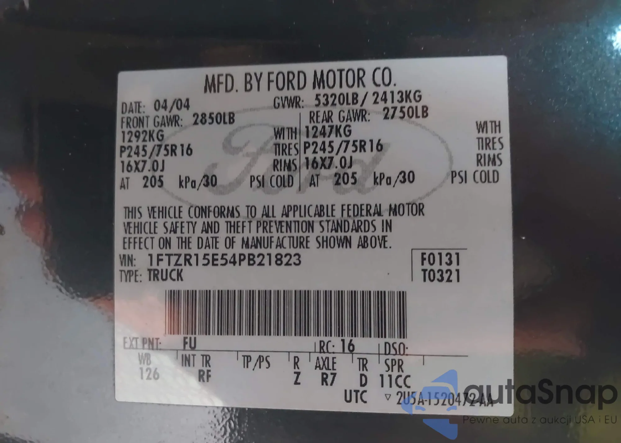• VIN: 1FTZR15E54PB21823