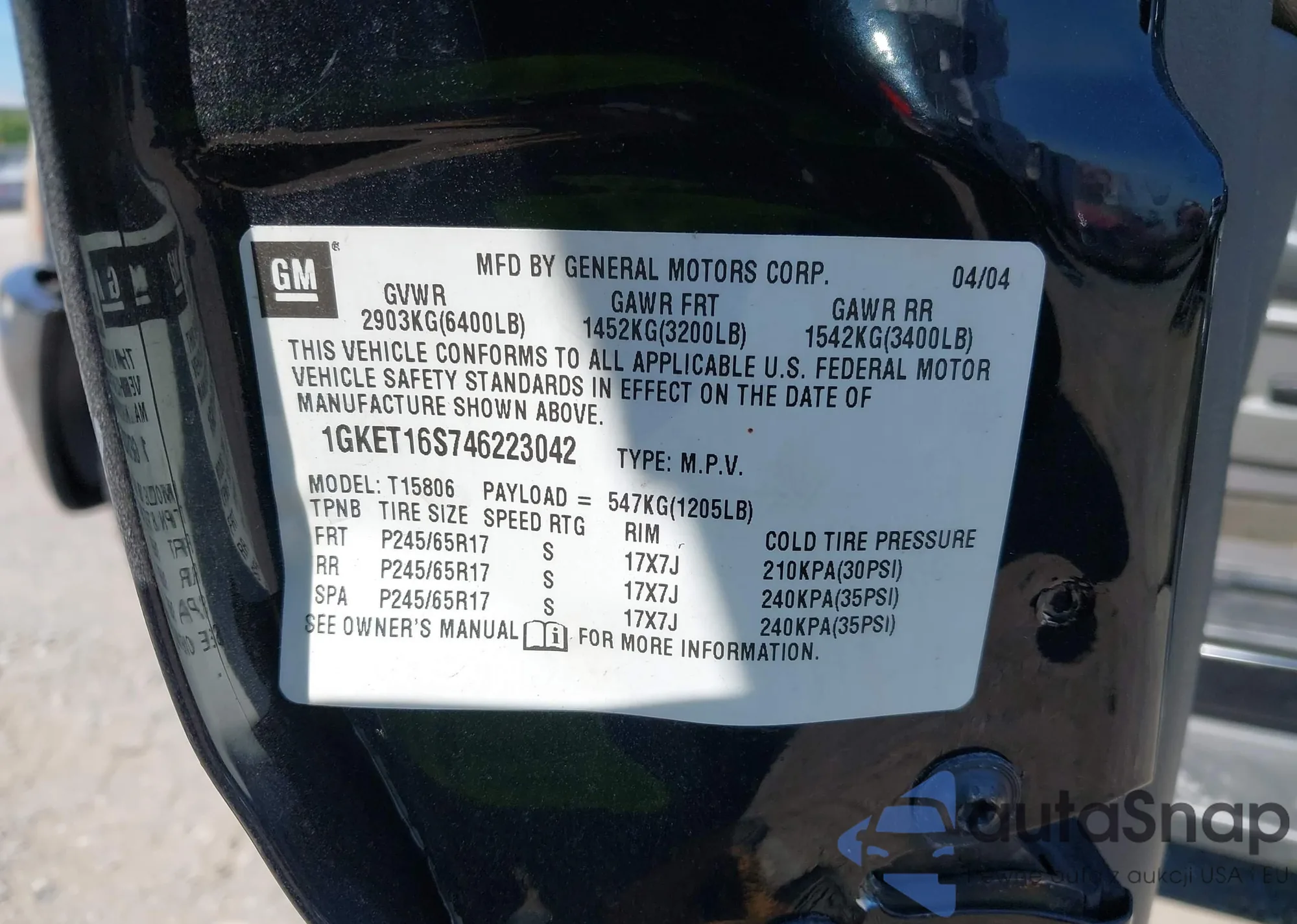 VIN: 1GKET16S746223042