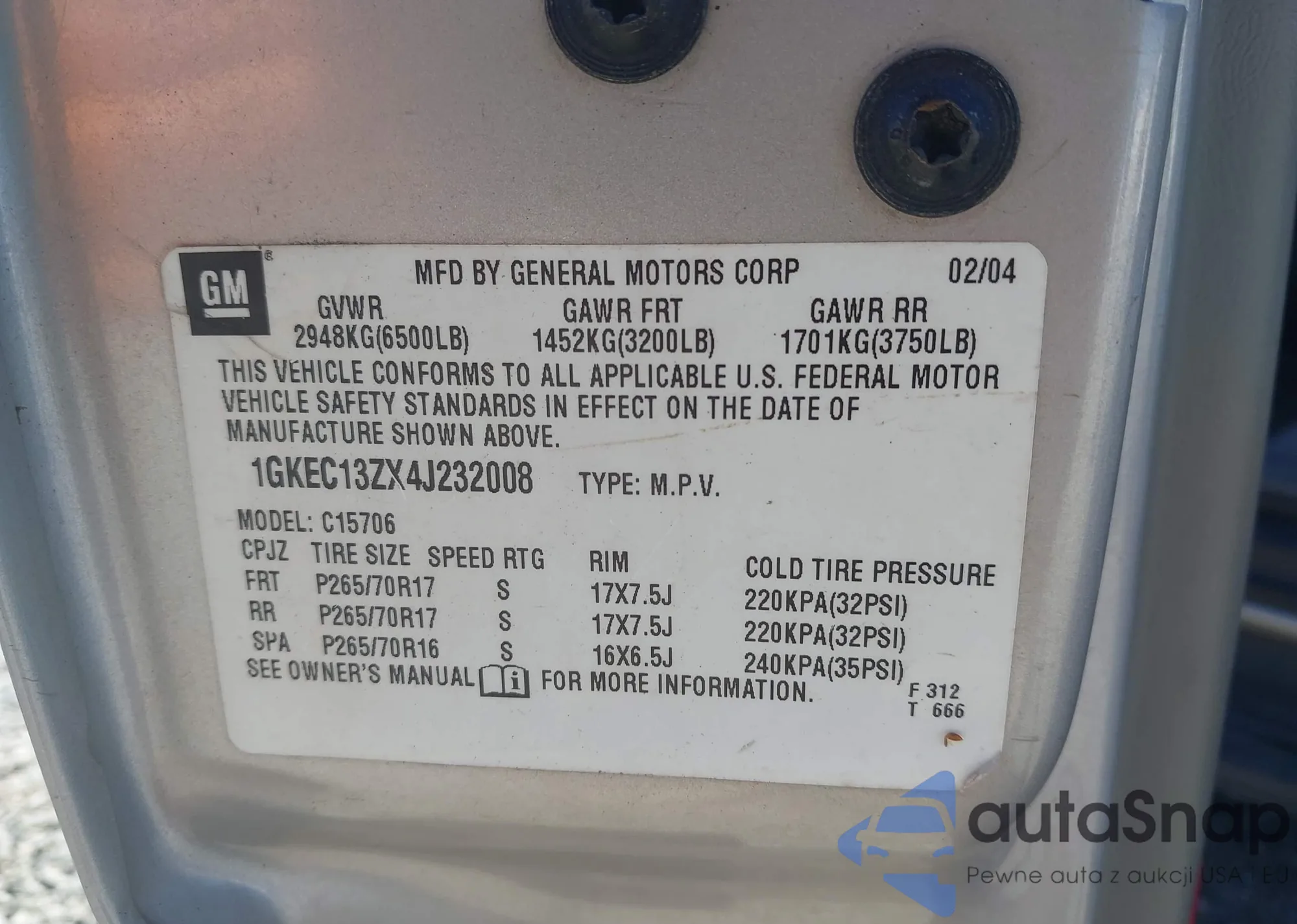 VIN: 1GKEC13ZX4J232008