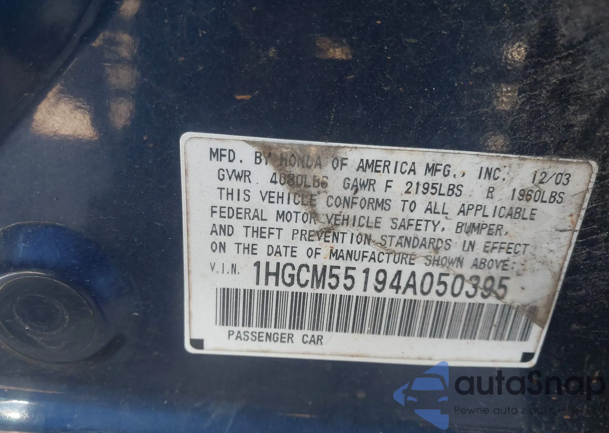 VIN: 1HGCM55194A050395