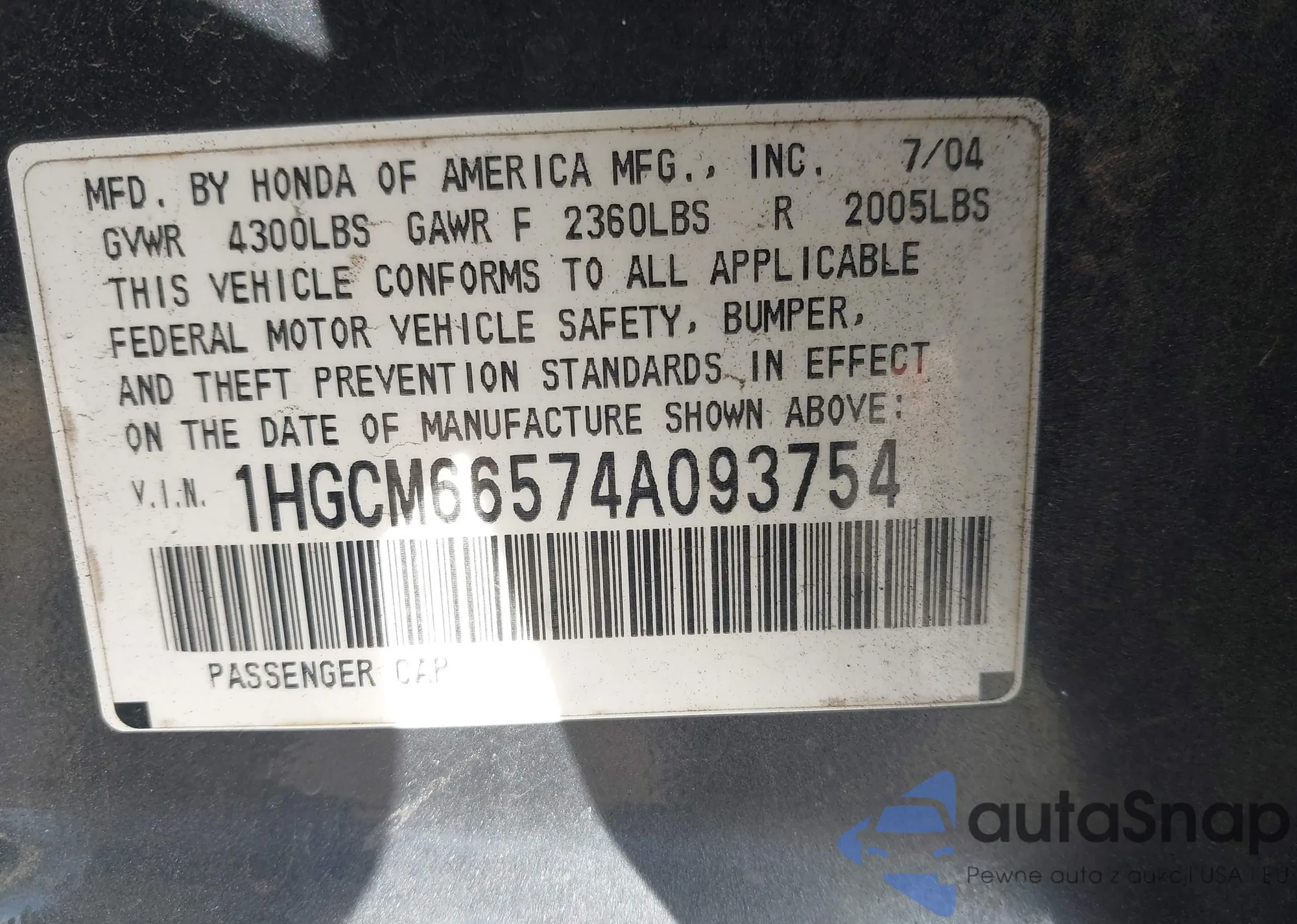 VIN: 1HGCM66574A093754