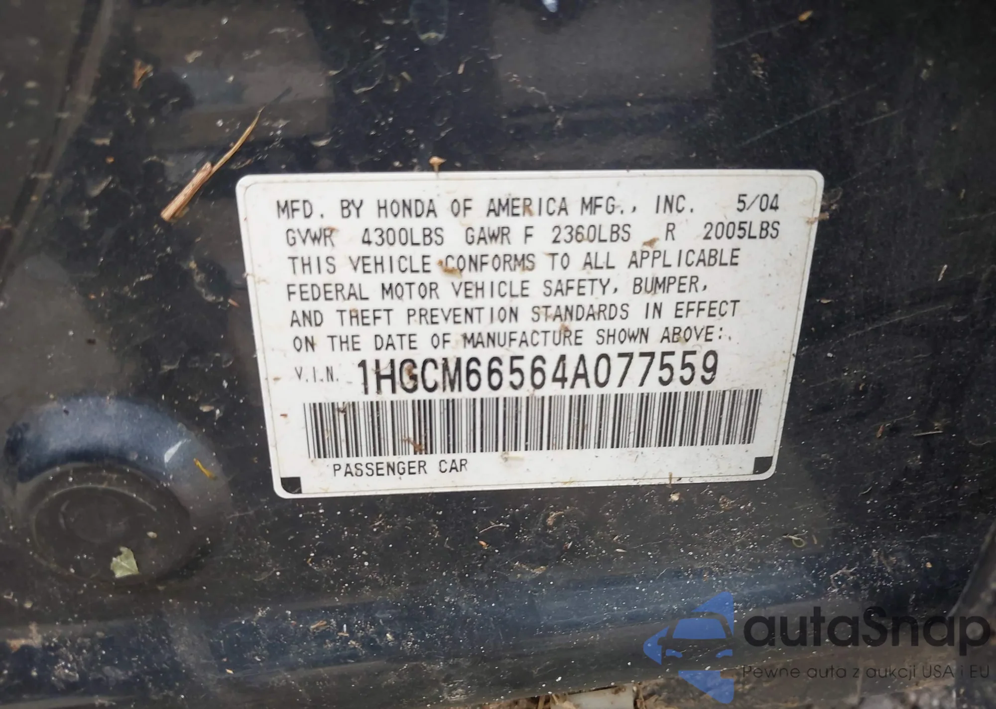 VIN: 1HGCM66564A077559