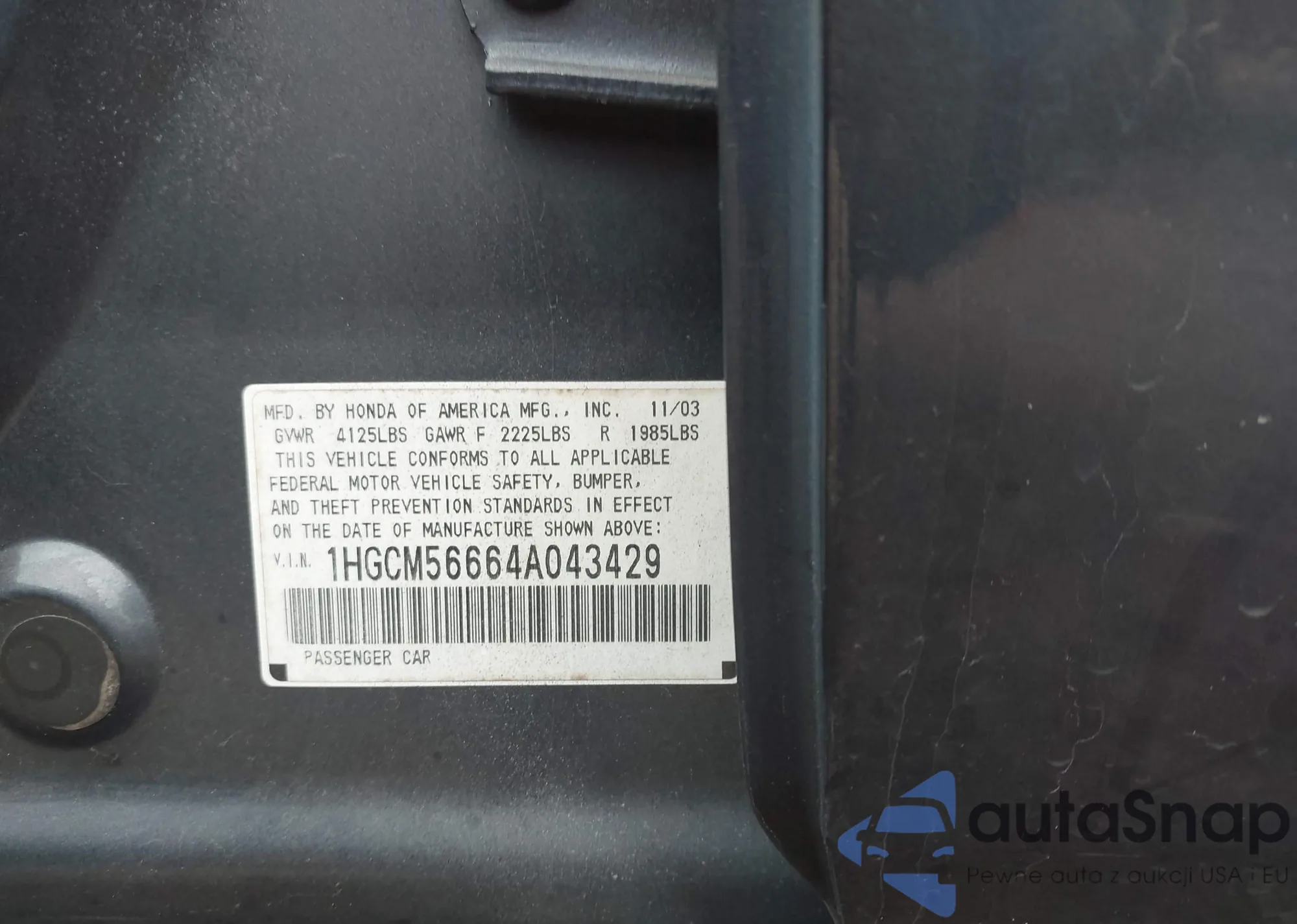 • VIN: 1HGCM56664A043429