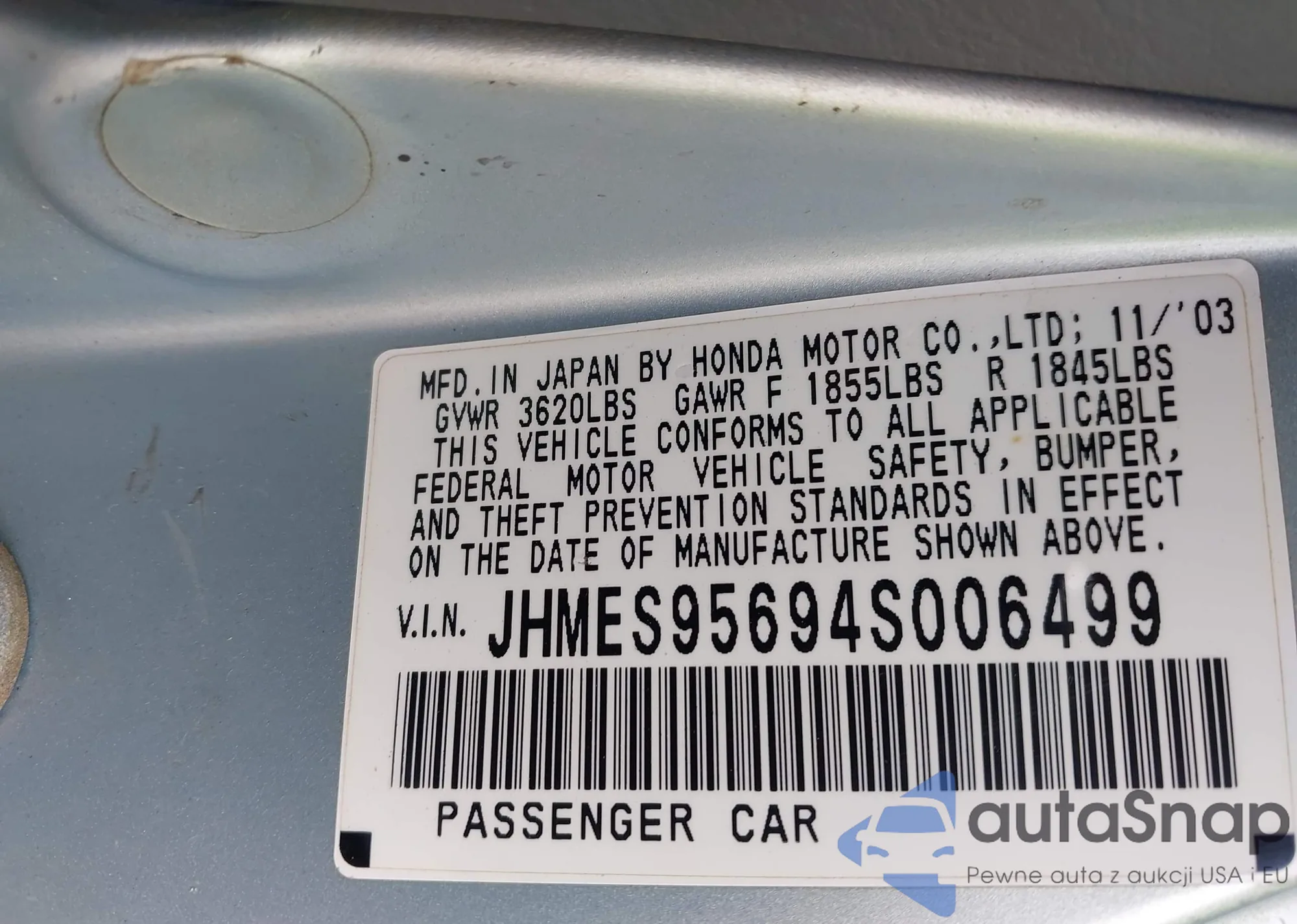 VIN: JHMES95694S006499