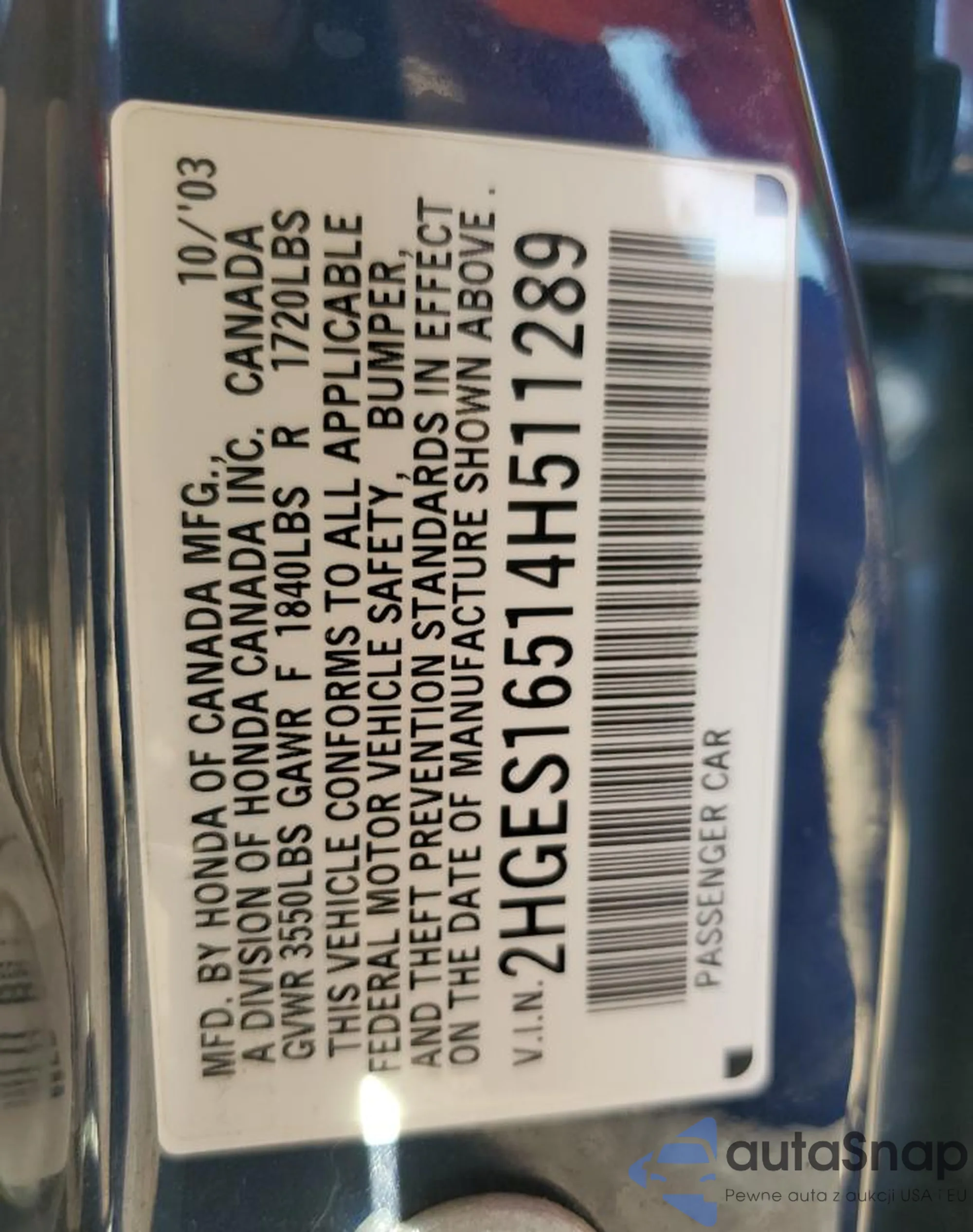 • VIN: 2HGES16514H511289