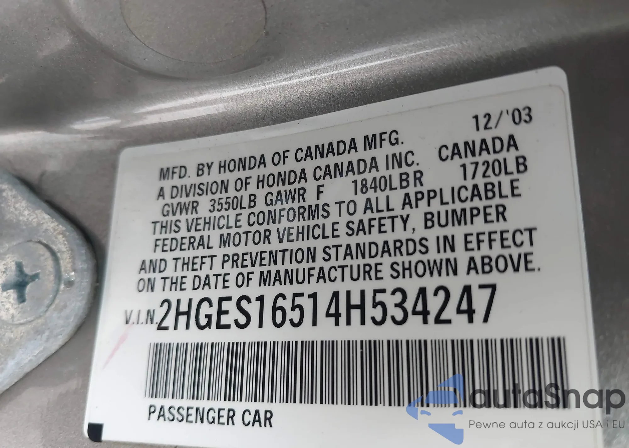 VIN: 2HGES16514H534247
