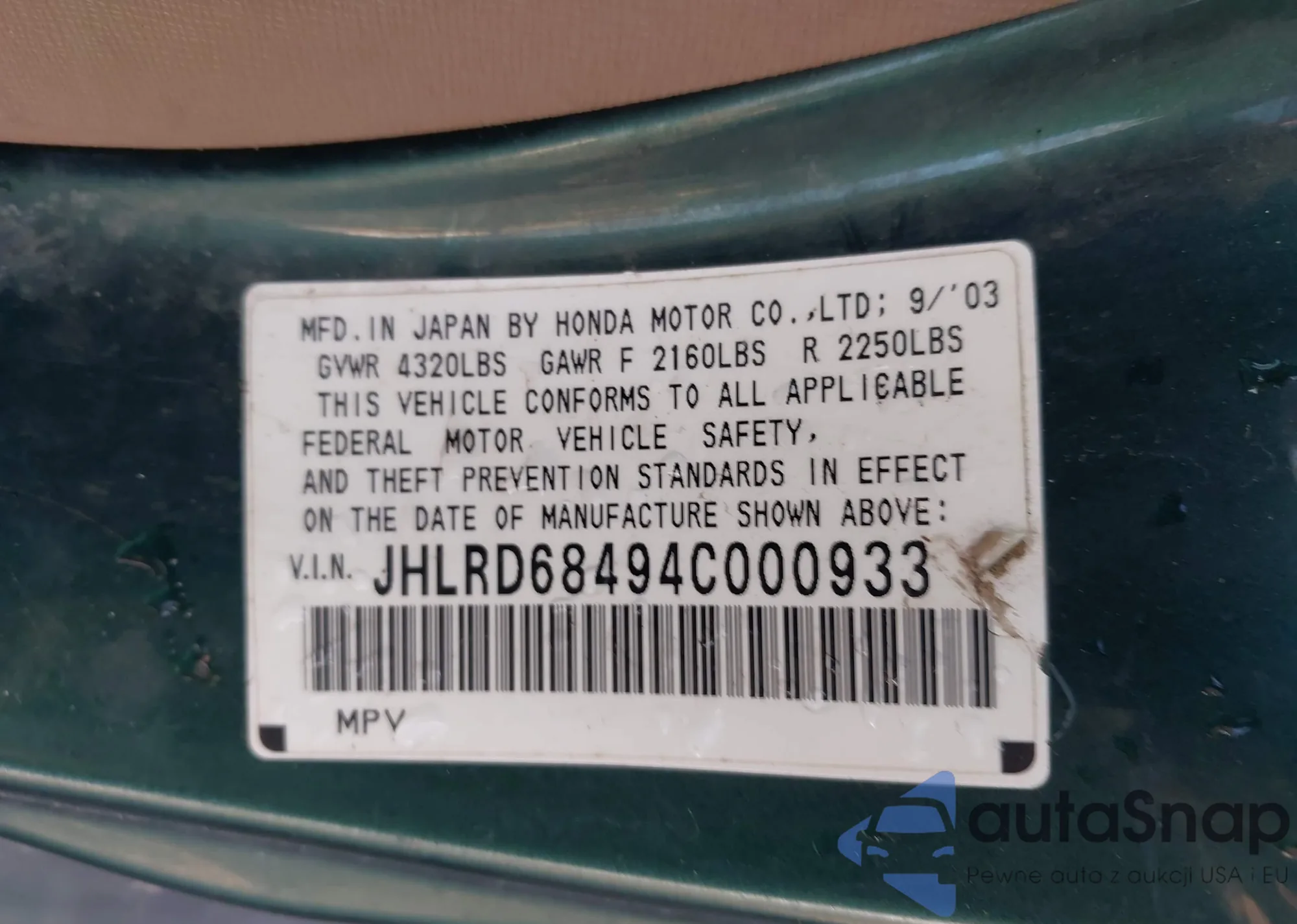 VIN: JHLRD68494C000933