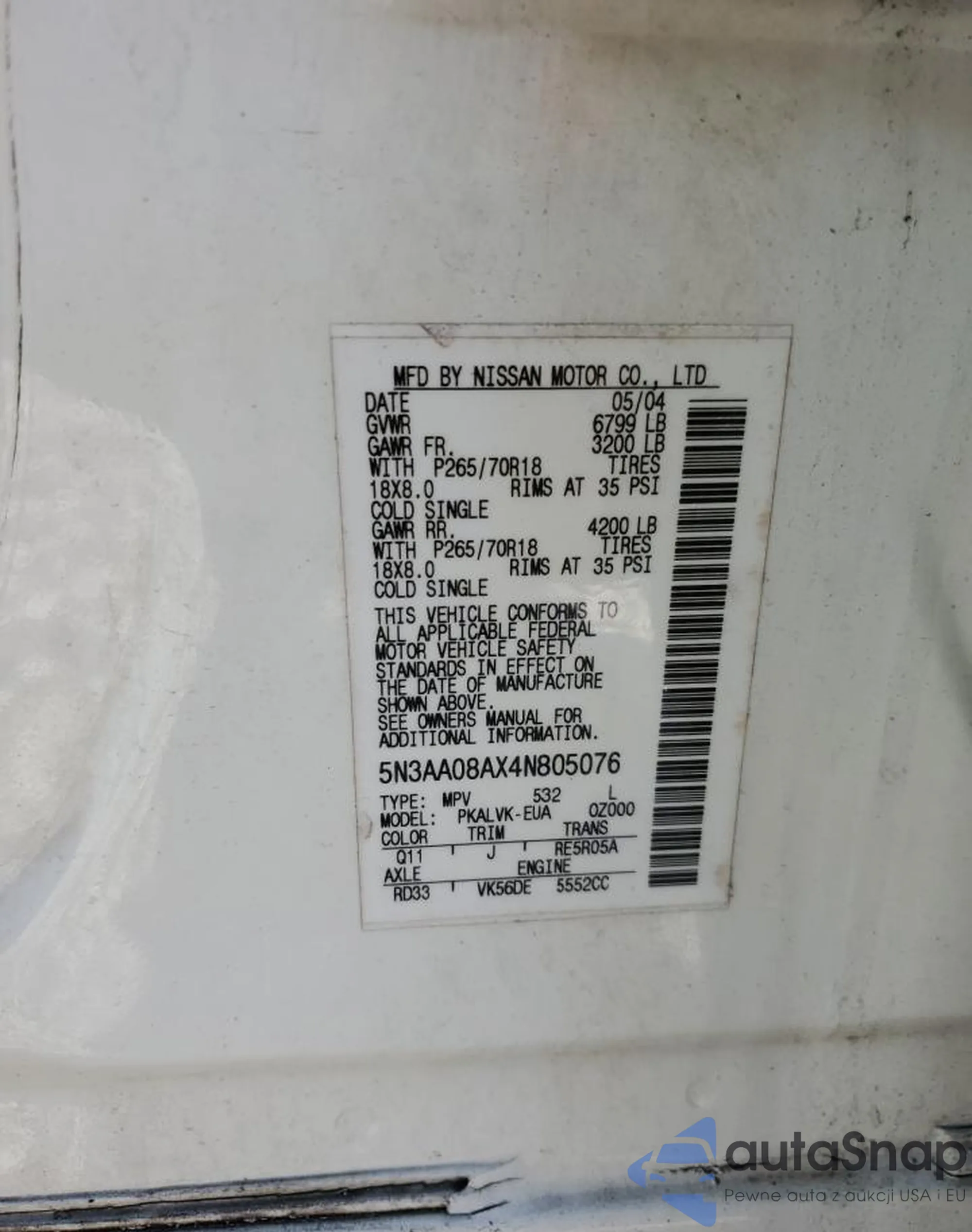 VIN: 5N3AA08AX4N805076