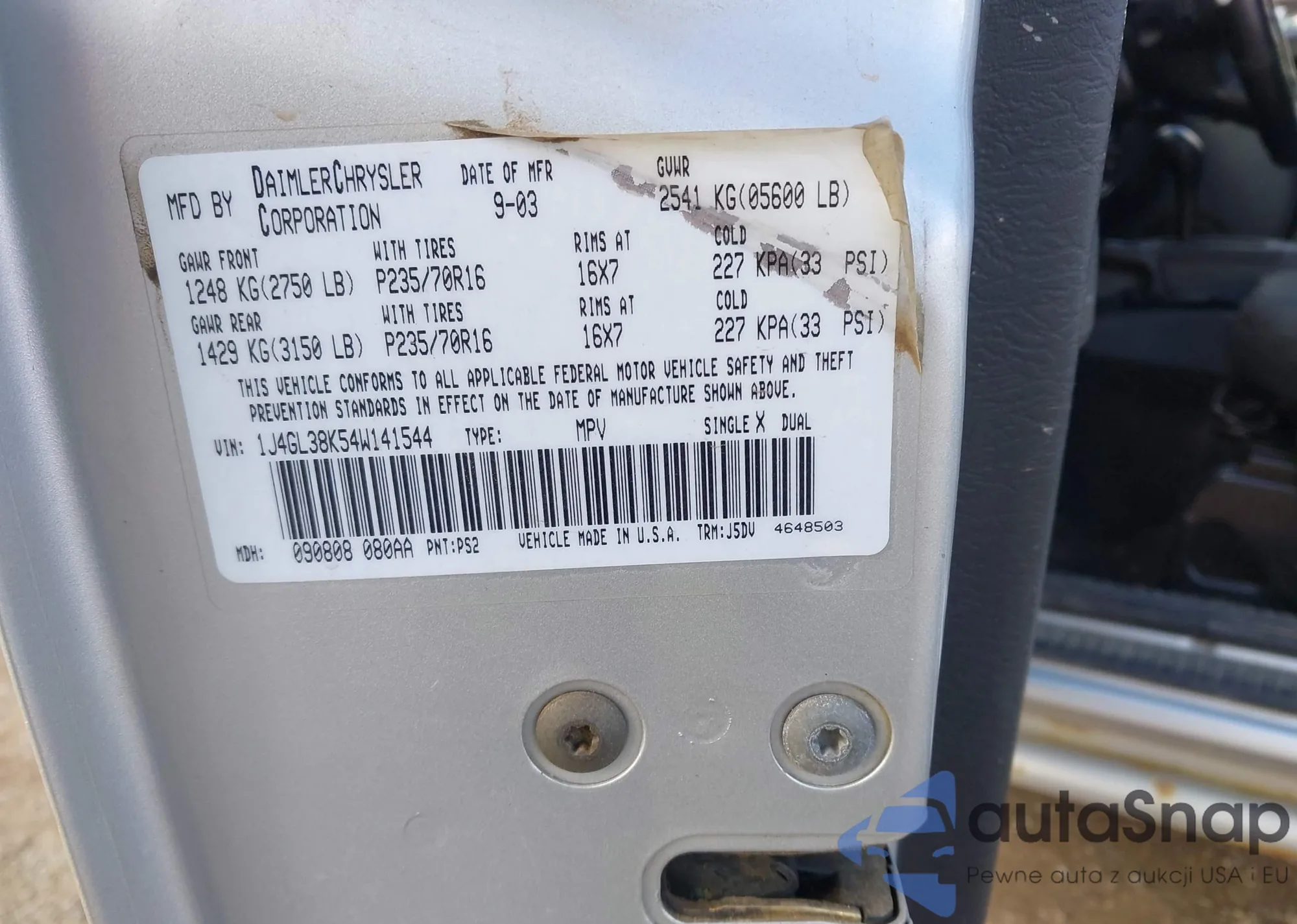 VIN: 1J4GL38K54W141544