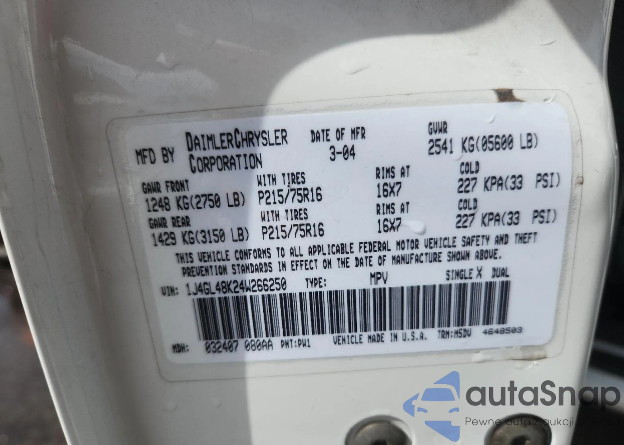 VIN: 1J4GL48K24W266250