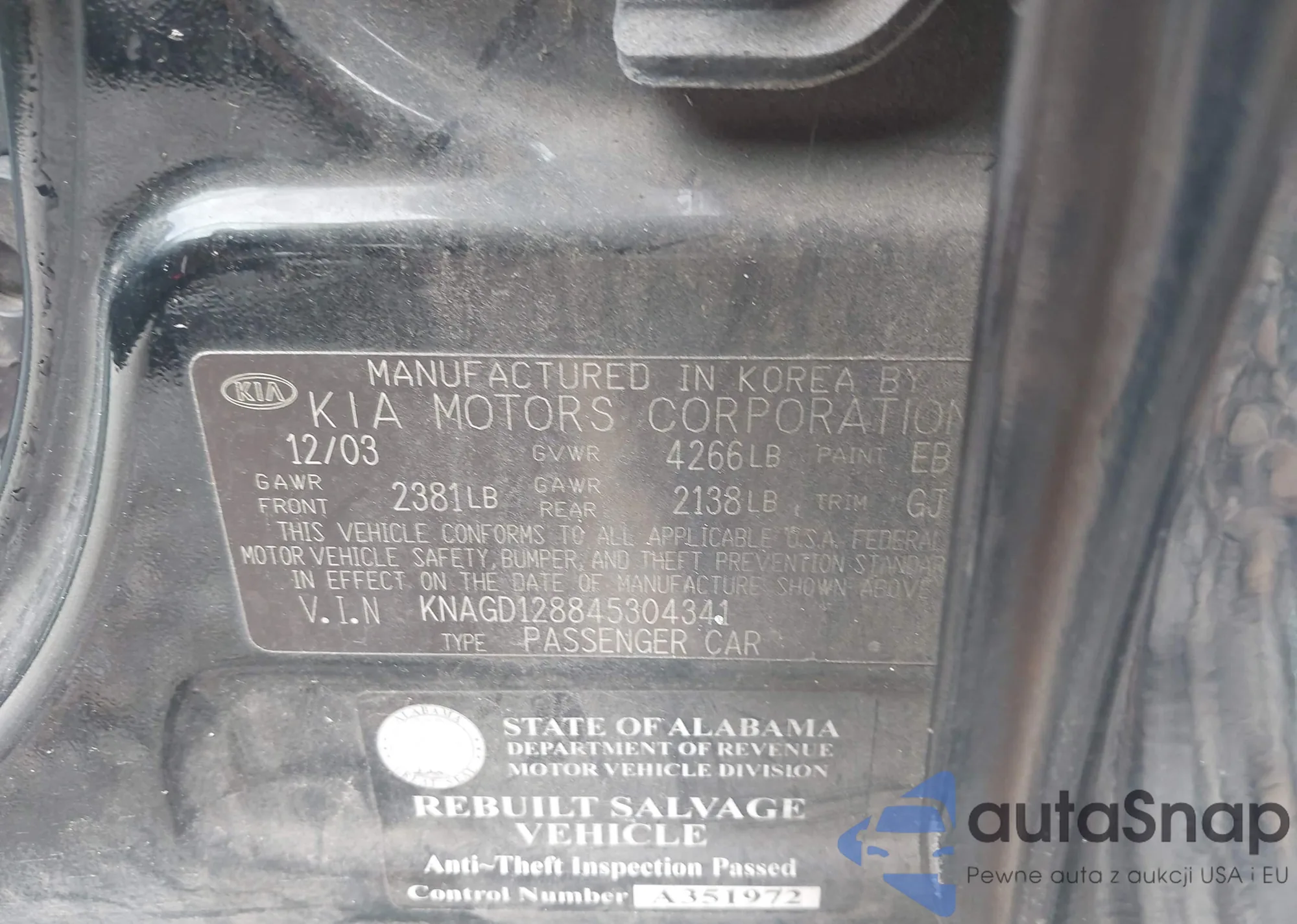 Автомобиль Kia Optima 2004 (VIN KNAGD128845304341) ранее не участвовал в торгах. Документы чистые, пробег соответствует или ниже среднего по рынку. Продаётся страховой компанией — рекомендуем покупку. Доставка в порт займет около 6–8 недель.