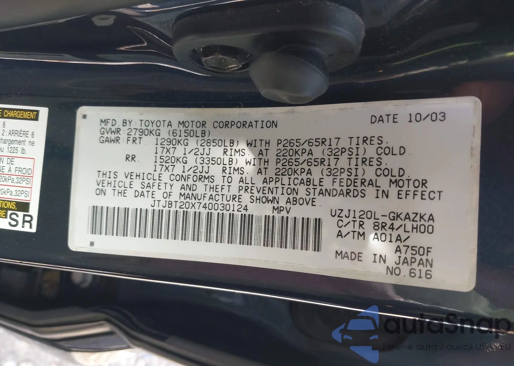 VIN: JTJBT20X740030124