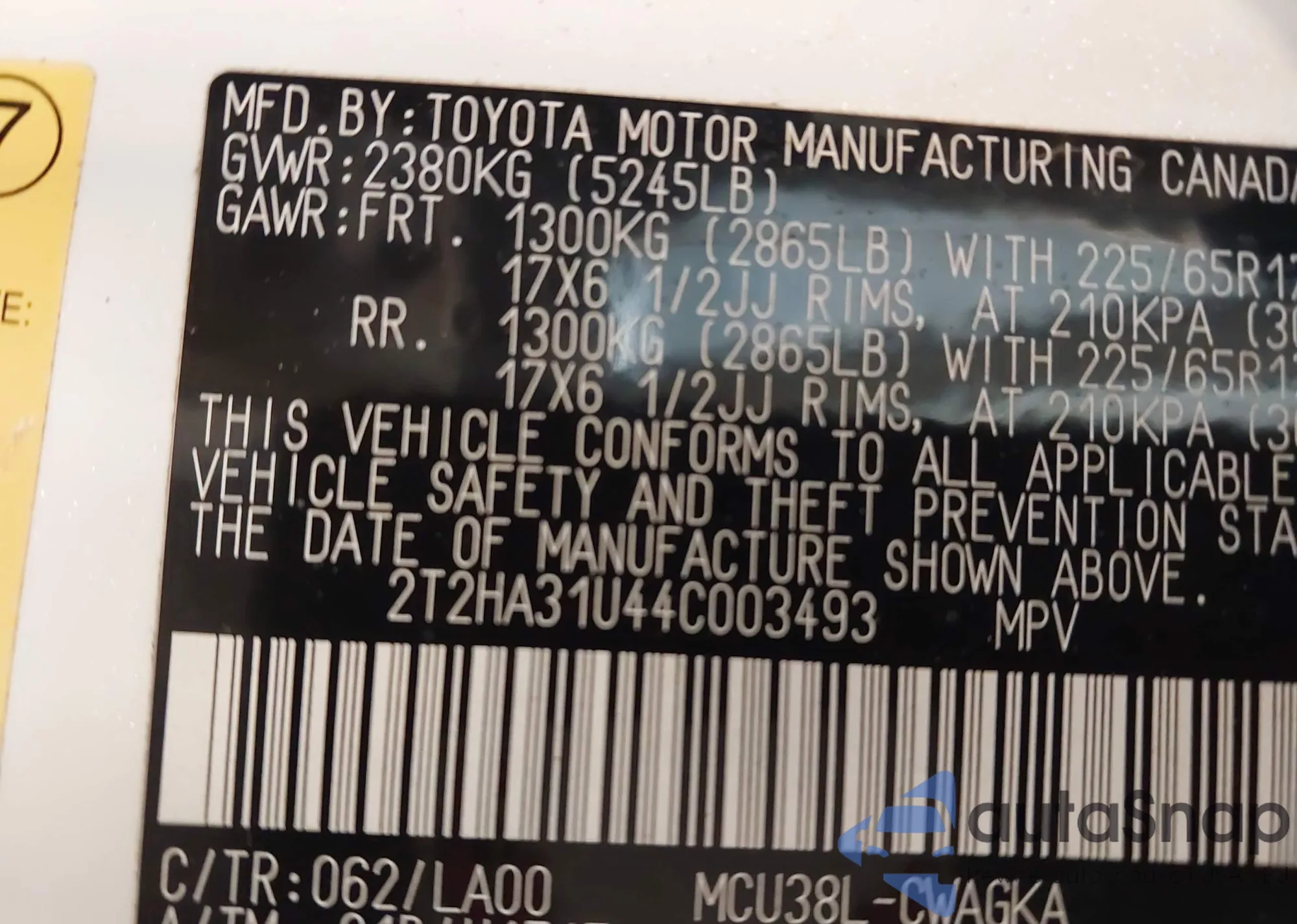 VIN: 2T2HA31U44C003493